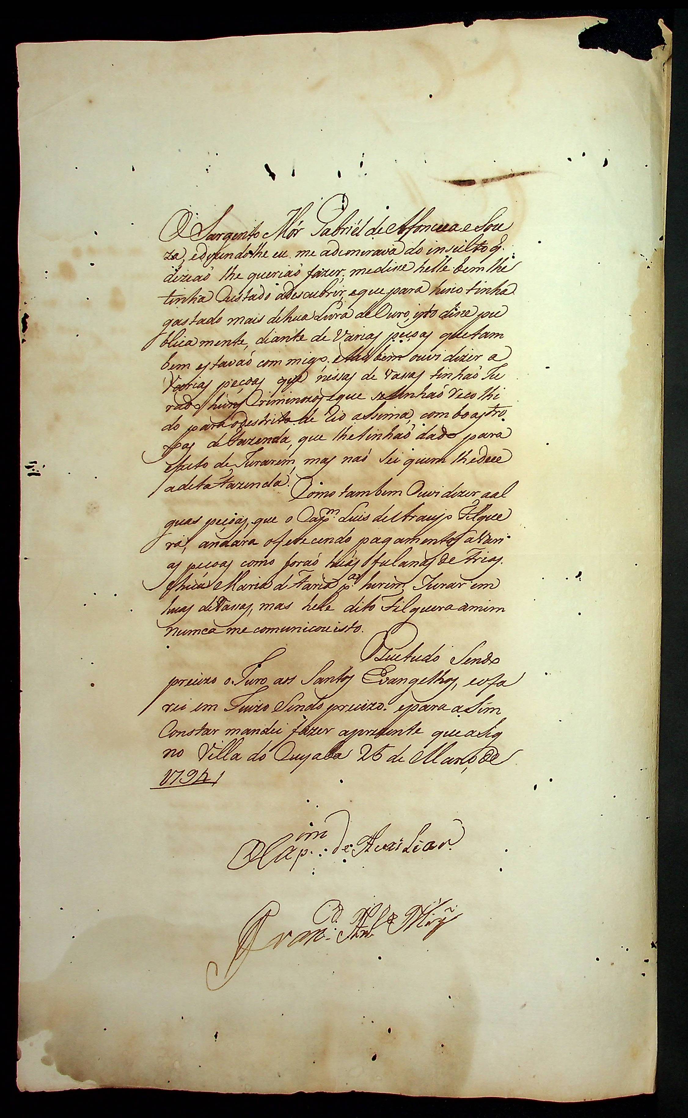 ATESTADO do Capitão de Auxiliar Francisco Antônio Magalhães ao [Governador e Capitão General da Capitania de Mato Grosso João de Albuquerque de Melo Pereira e Cáceres].