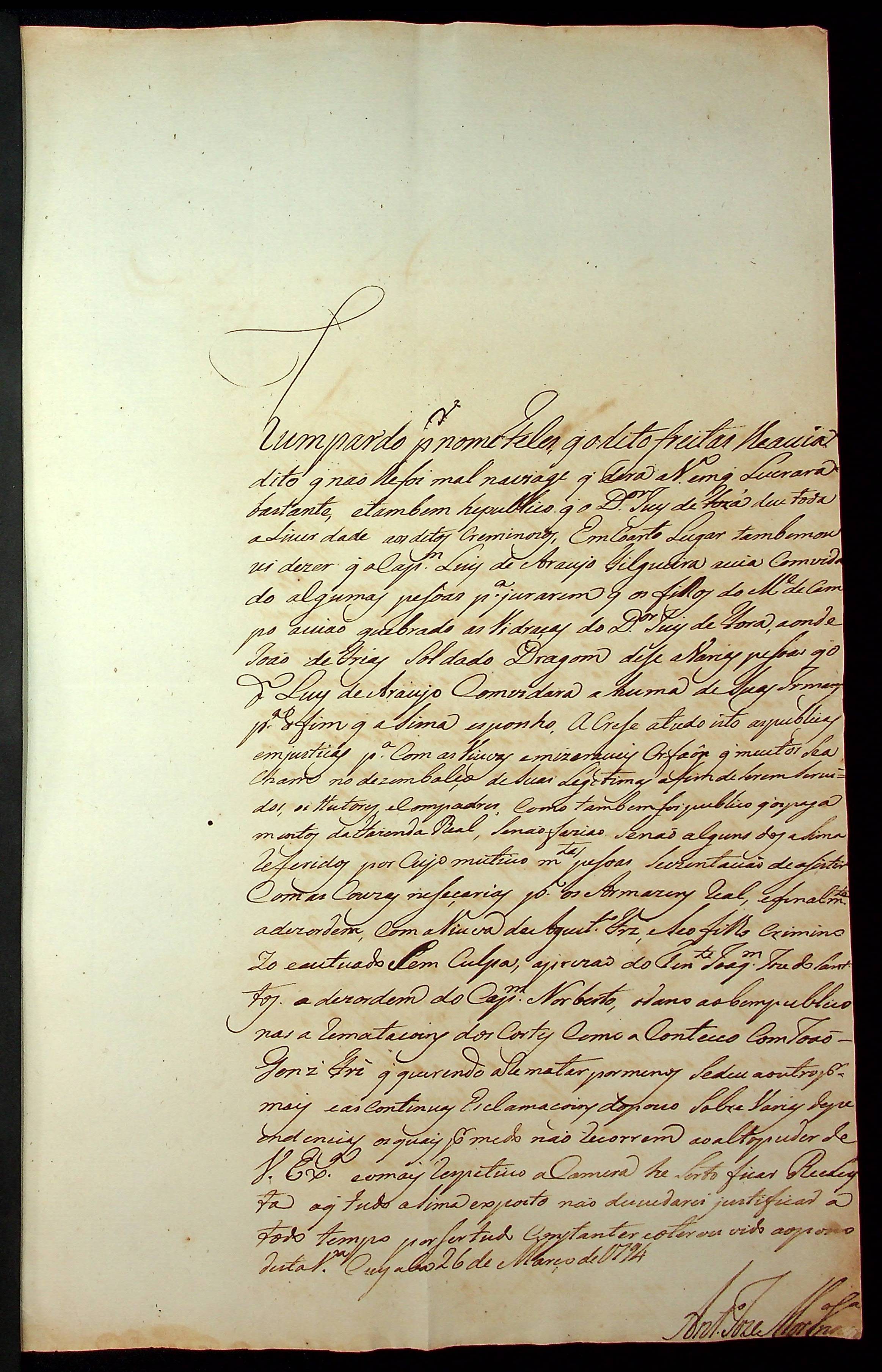 ATESTADO do Sargento Supra da Companhia da Vila do Cuiabá Antônio José [Moreira] Vila Nova, ao [Governador e Capitão General da Capitania de Mato Grosso João de Albuquerque de Mello Pereira e Cáceres].