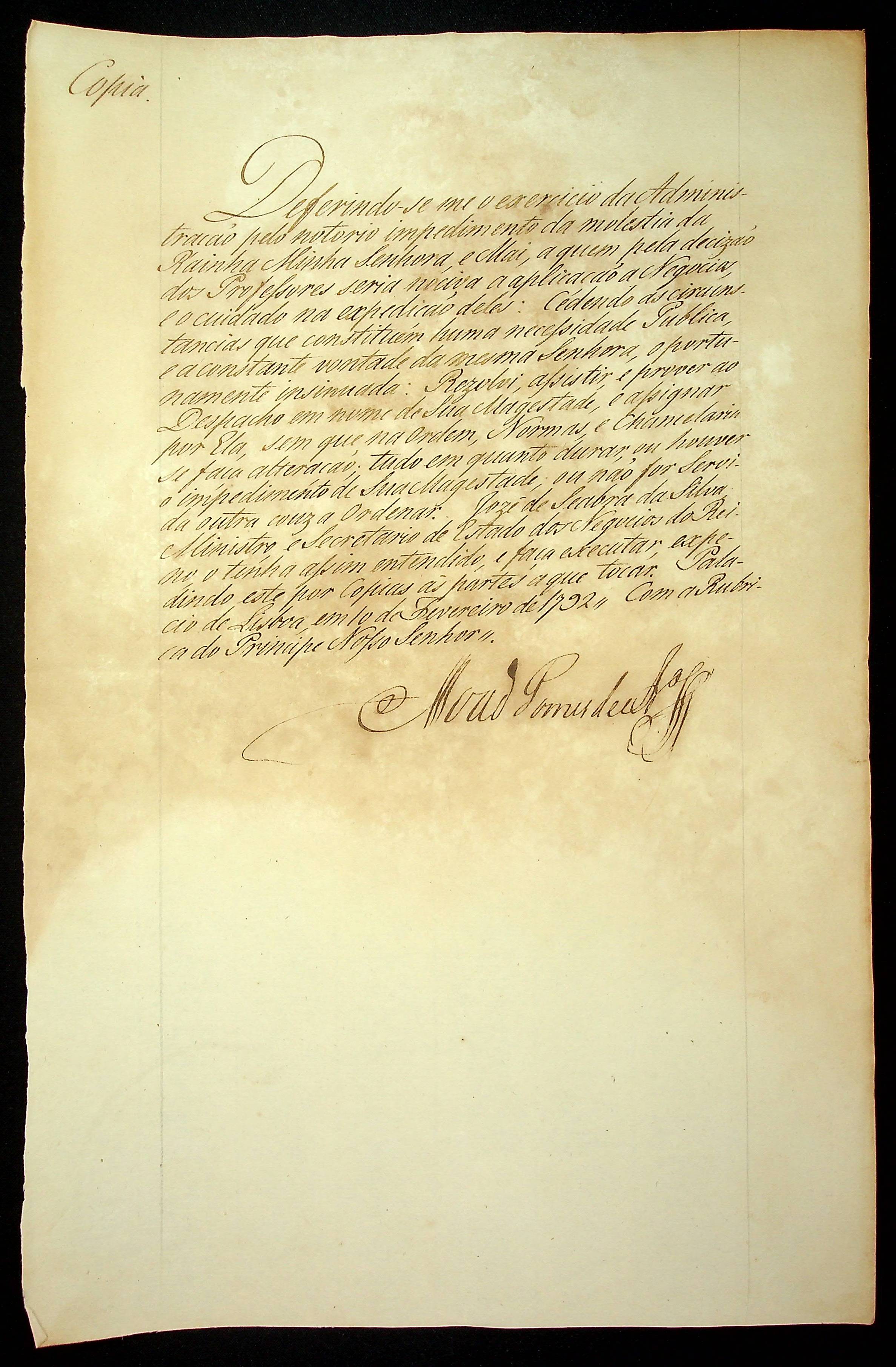 AVISO RÉGIO de Martinho de Mello e Castro ao [Governador e Capitão-General da Capitania de Mato Grosso] João de Albuquerque de Mello Pereira e Cáceres.