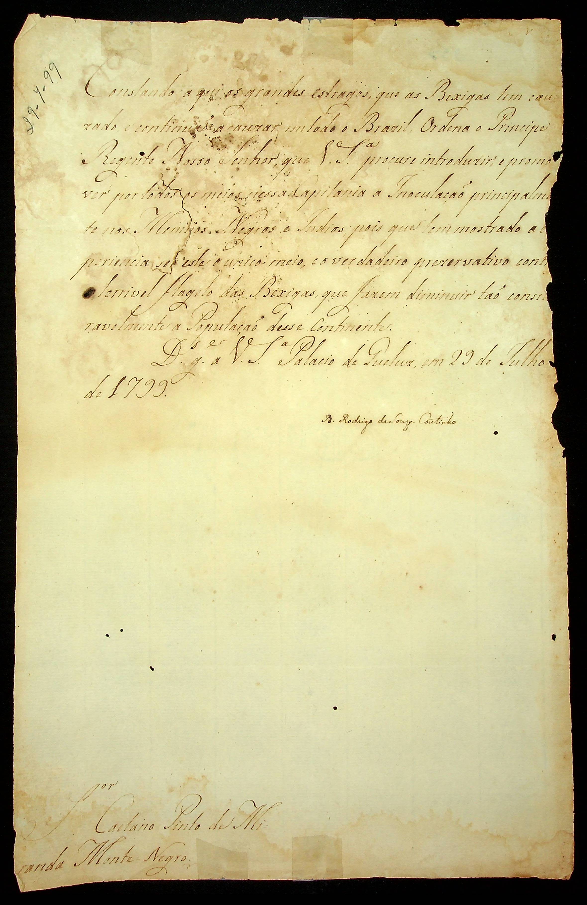 AVISO RÉGIO de D. Rodrigo de Souza Coutinho ao [Governador e Capitão General da Capitania de Mato Grosso] Caetano Pinto de Miranda e Montenegro.