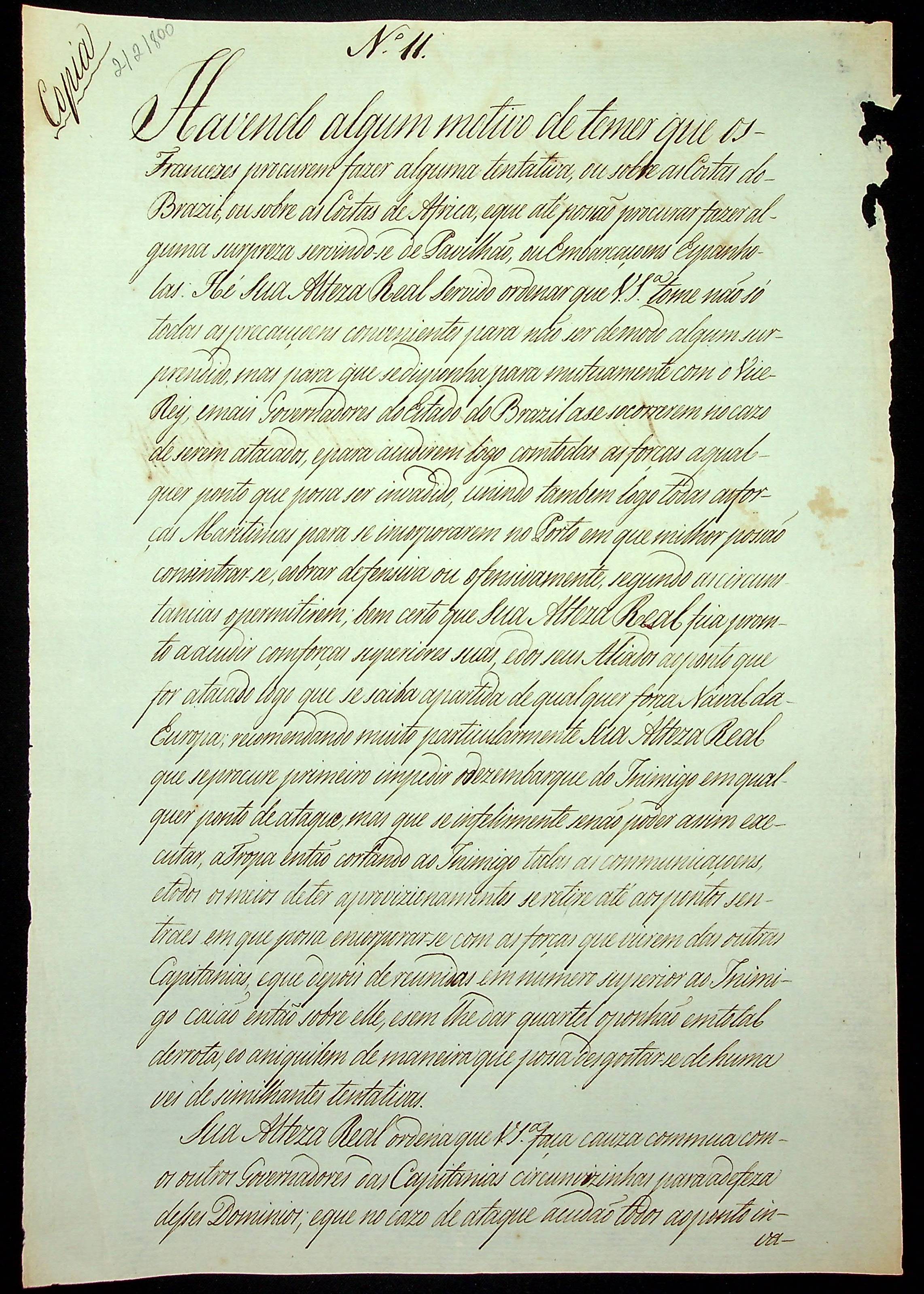 AVISO RÉGIO (cópia) de D. Rodrigo de Souza Coutinho ao [Governador e Capitão General da Capitania de Mato Grosso] Caetano Pinto de Miranda e Montenegro.