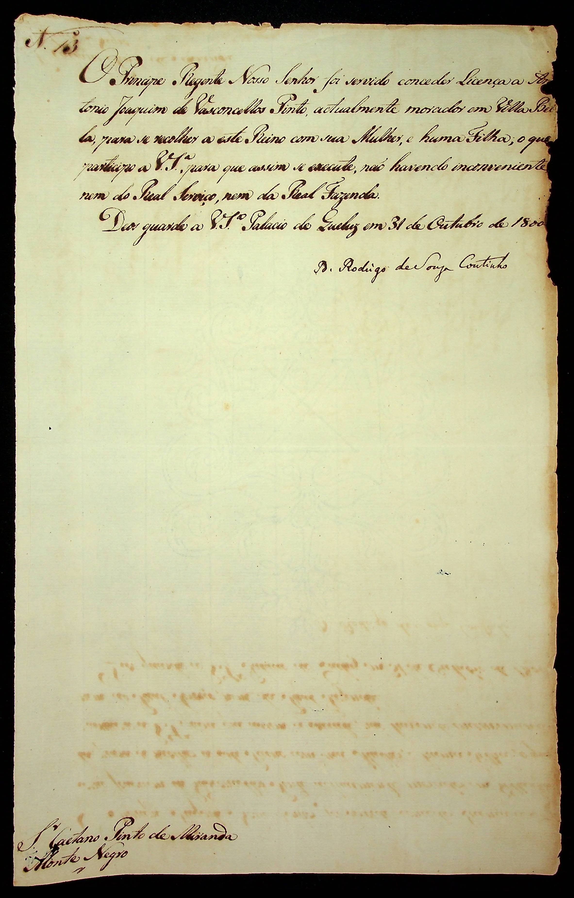 AVISO RÉGIO de D. Rodrigo de Souza Coutinho ao [Governador e Capitão General da Capitania de Mato Grosso] Caetano Pinto de Miranda e Montenegro.