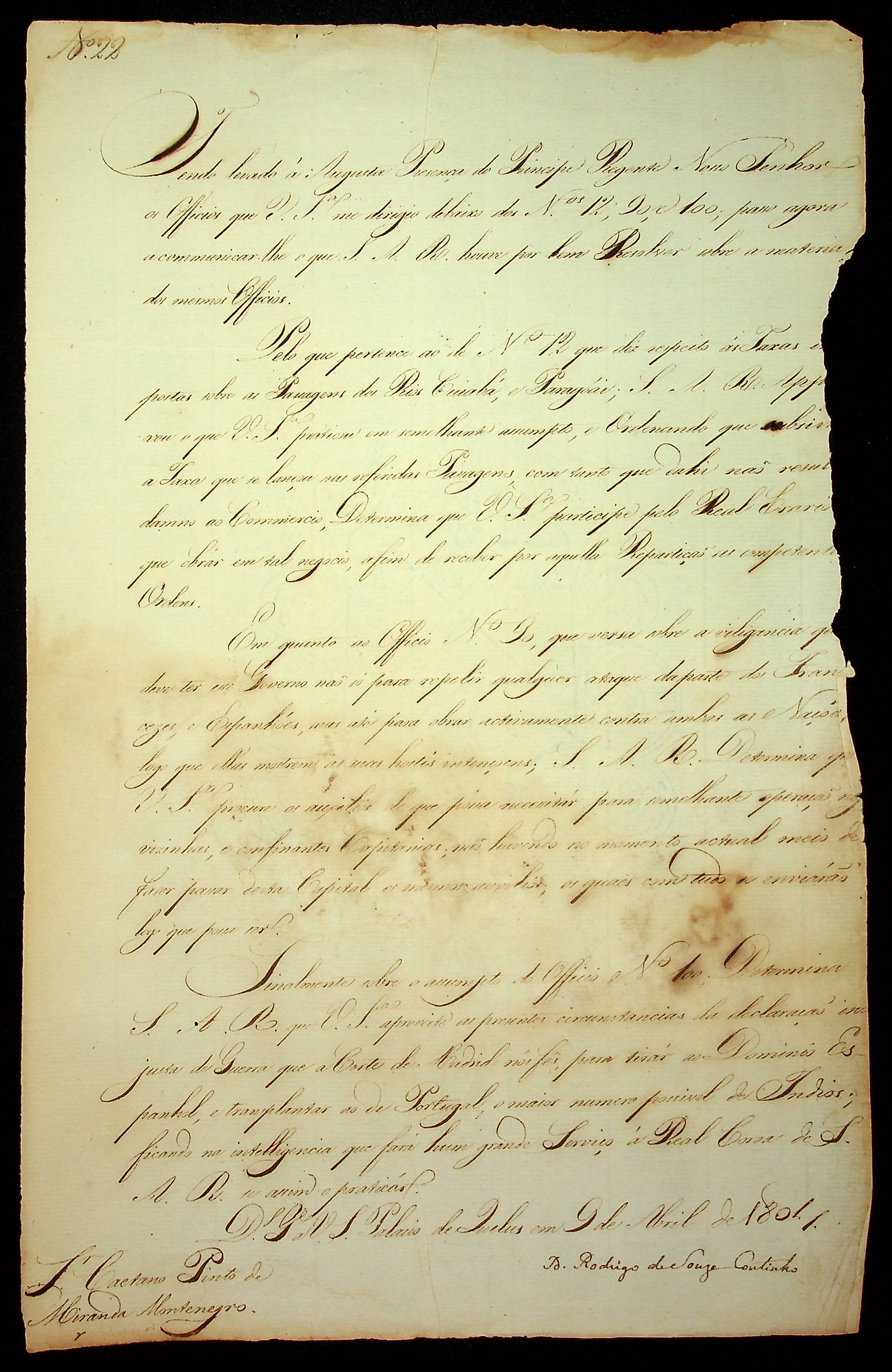 AVISO RÉGIO de D. Rodrigo de Souza Coutinho ao [Governador e Capitão General da Capitania de Mato Grosso] Caetano Pinto de Miranda e Montenegro.