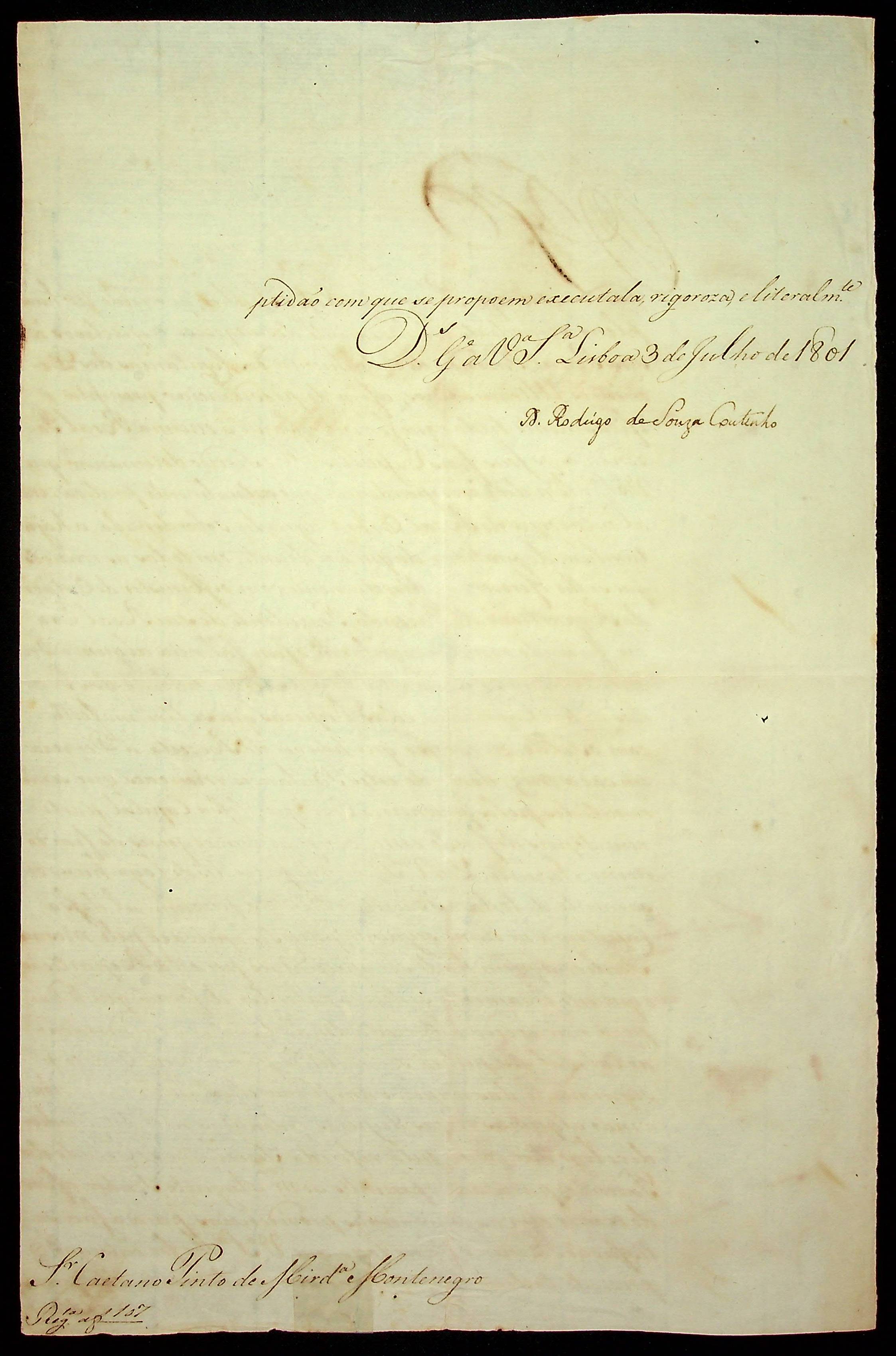 AVISO RÉGIO de D. Rodrigo de Souza Coutinho ao [Governador e Capitão General da Capitania de Mato Grosso] Caetano Pinto de Miranda e Montenegro.