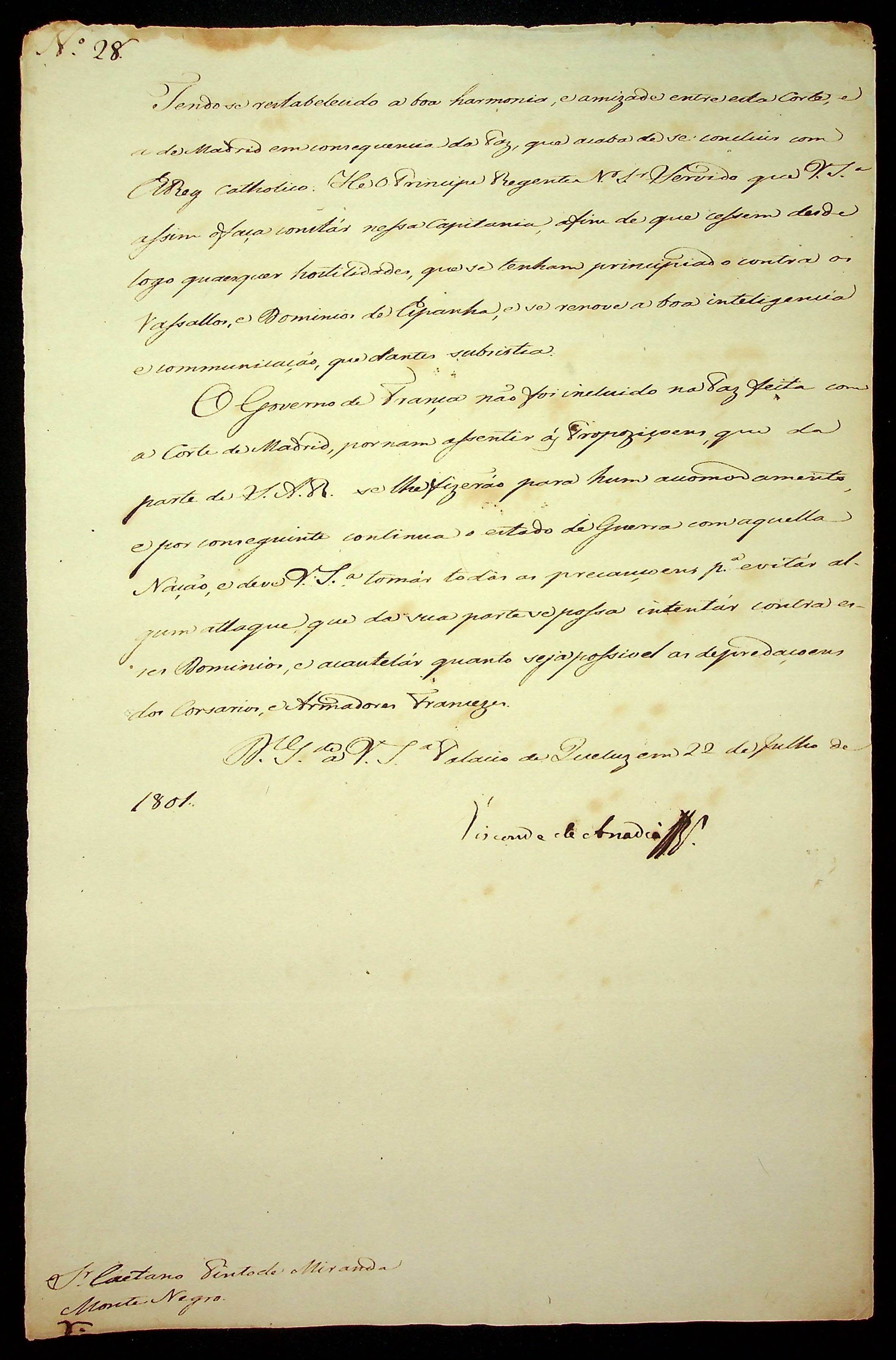 AVISO RÉGIO do Visconde de Anadia ao [Governador e Capitão General da Capitania de Mato Grosso] Caetano Pinto de Miranda e Montenegro.