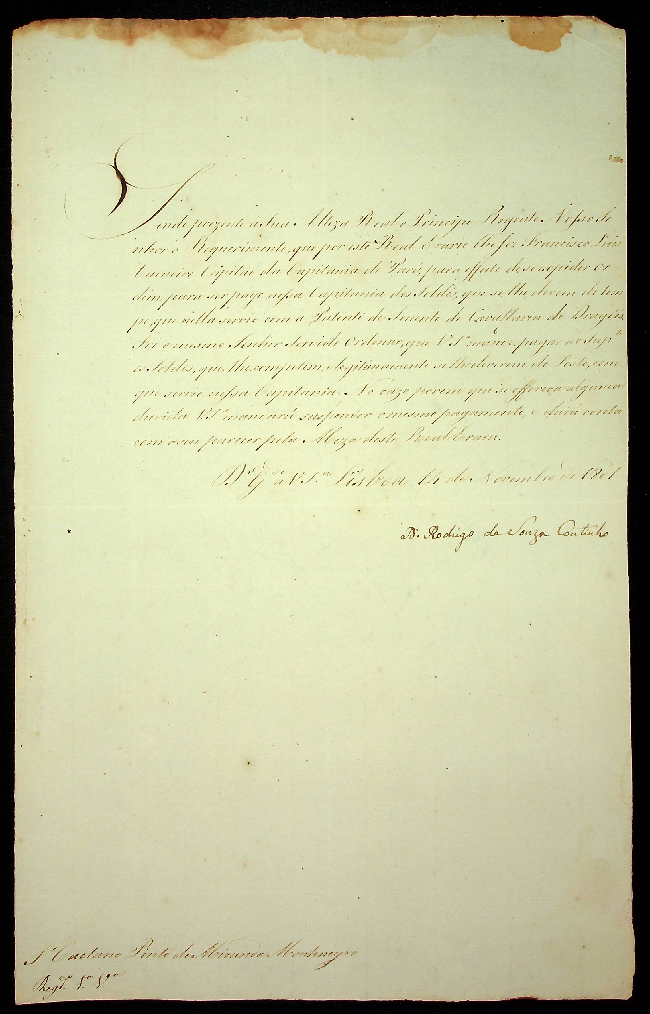 AVISO RÉGIO de D. Rodrigo de Souza Coutinho ao [Governador e Capitão General da Capitania de Mato Grosso] Caetano Pinto de Miranda e Montenegro.