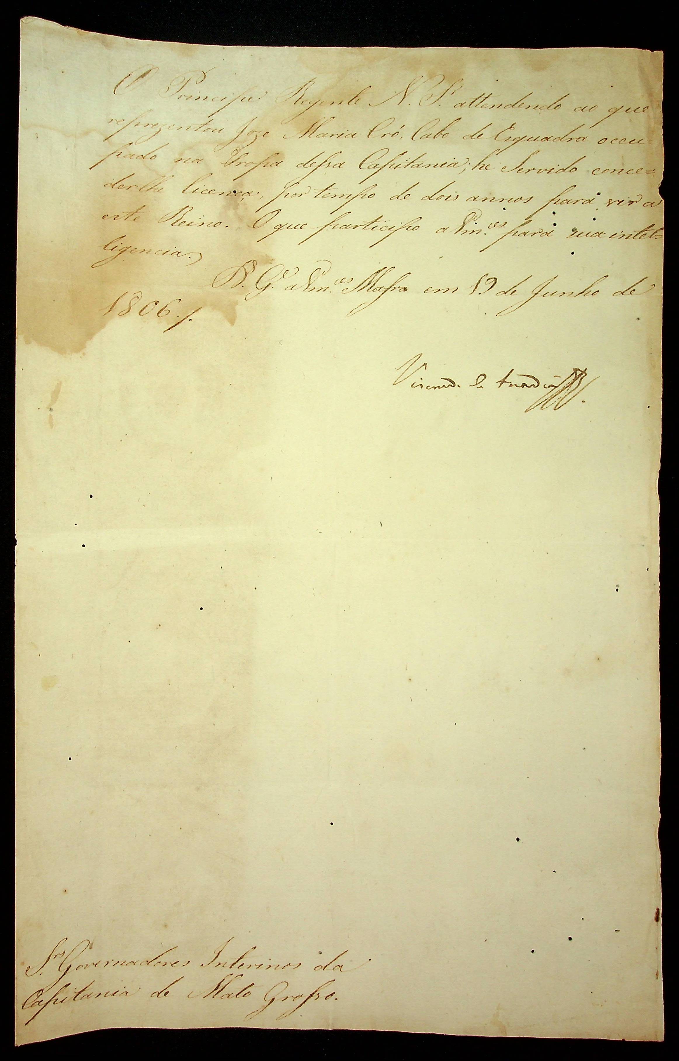 AVISO RÉGIO do Visconde de Anadia à [3ª Junta Governativa da Capitania de Mato Grosso].