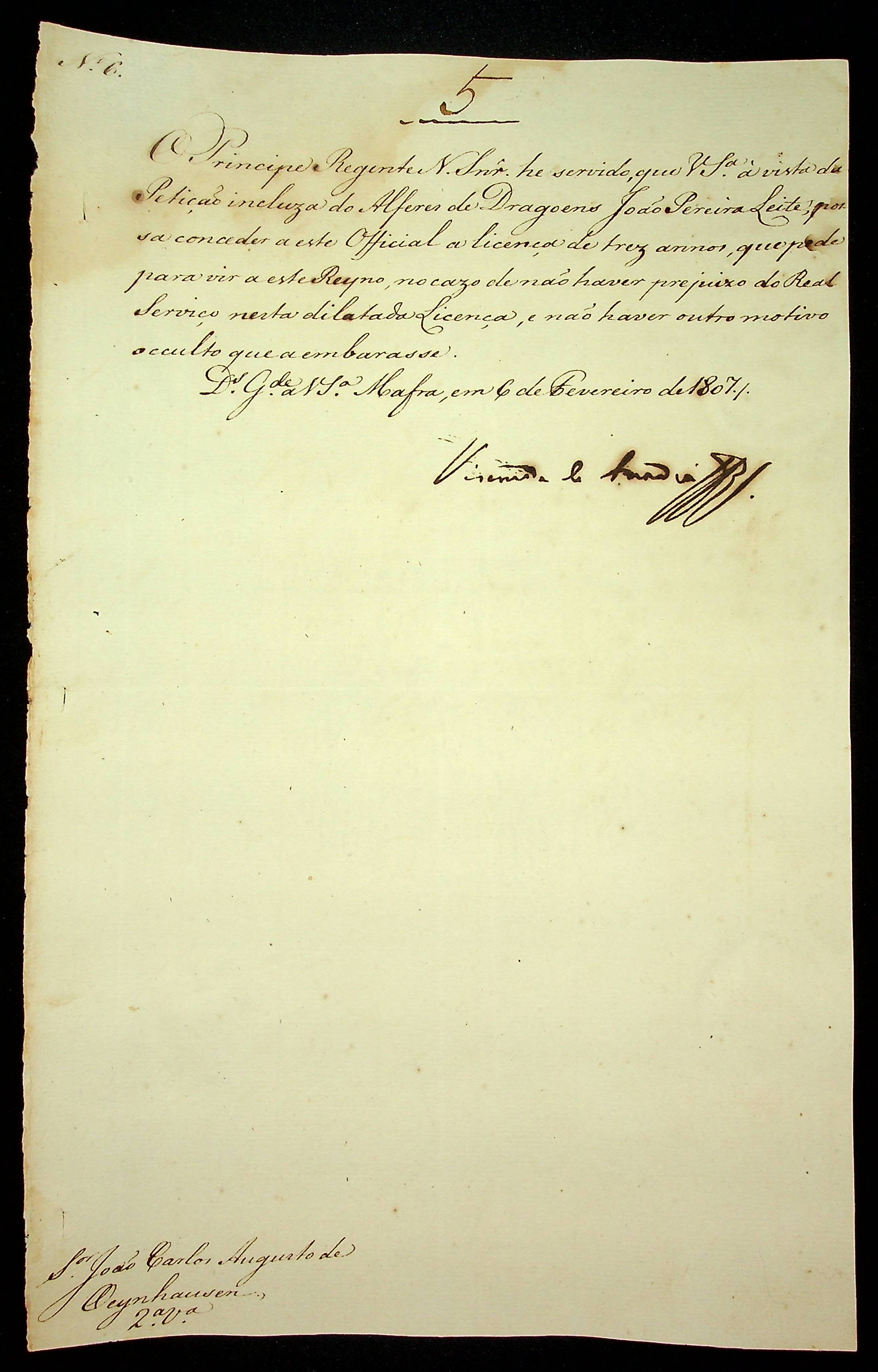 AVISO RÉGIO do Visconde de Anadia ao [Governador e Capitão-General da Capitania de Mato Grosso] João Carlos Augusto D’Oeynhausen e Gravemberg.