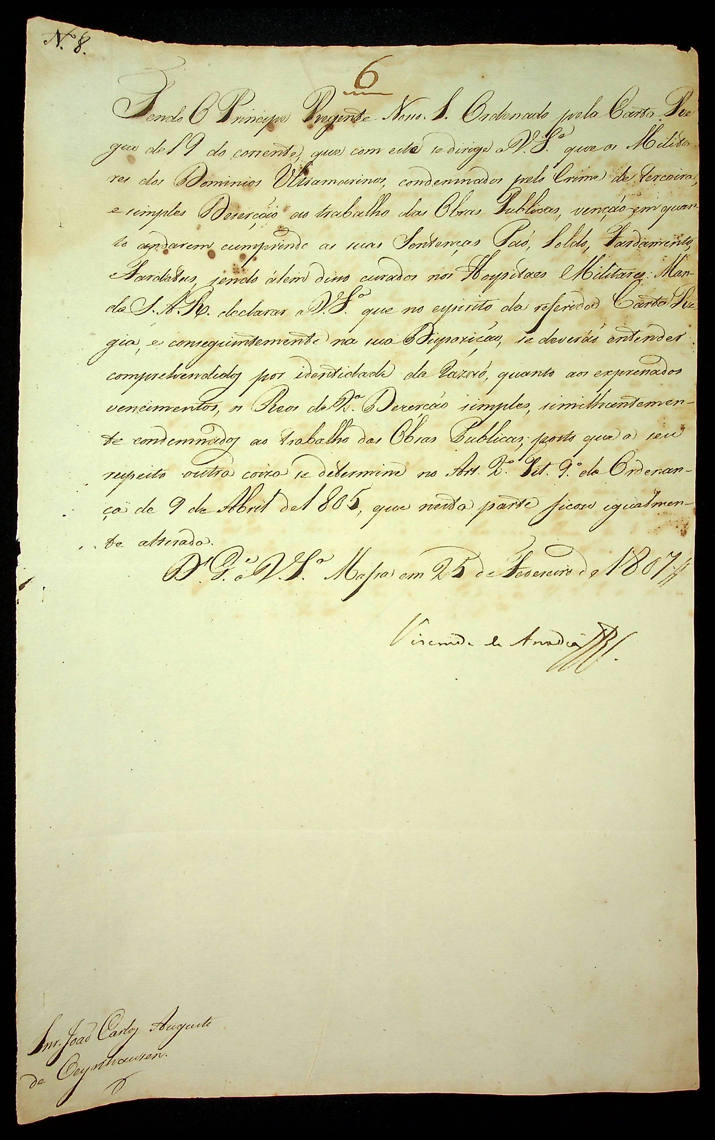 AVISO RÉGIO do Visconde de Anadia ao [Governador e Capitão-General da Capitania de Mato Grosso] João Carlos Augusto D’Oeynhausen e Gravemberg.