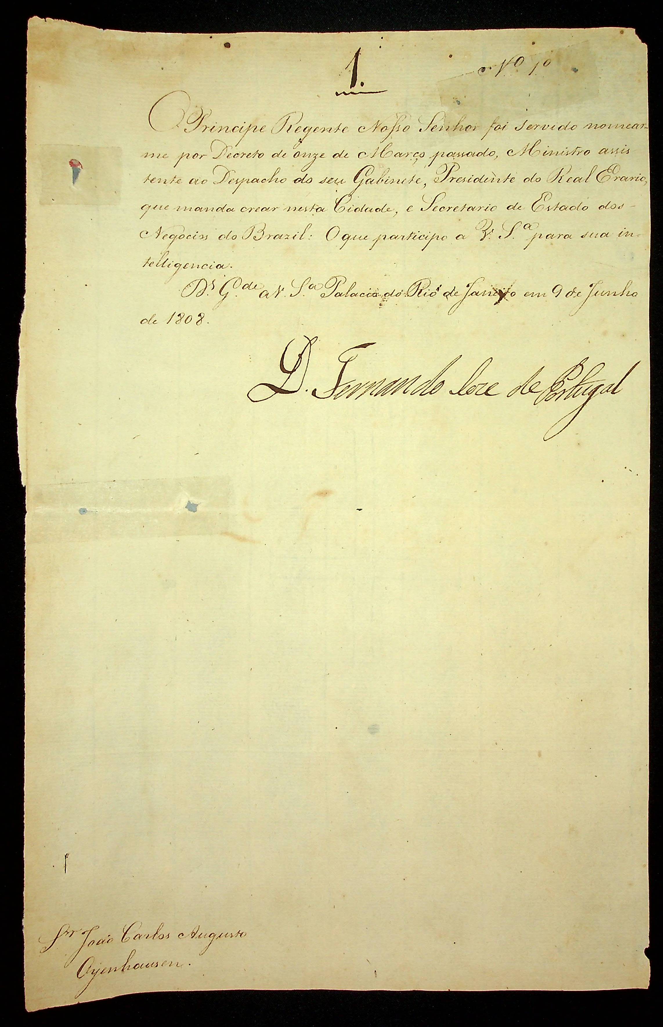 AVISO RÉGIO de Fernando José de Portugal ao [Governador e Capitão-General da Capitania de Mato Grosso] João Carlos Augusto D’Oeynhausen e Gravemberg.