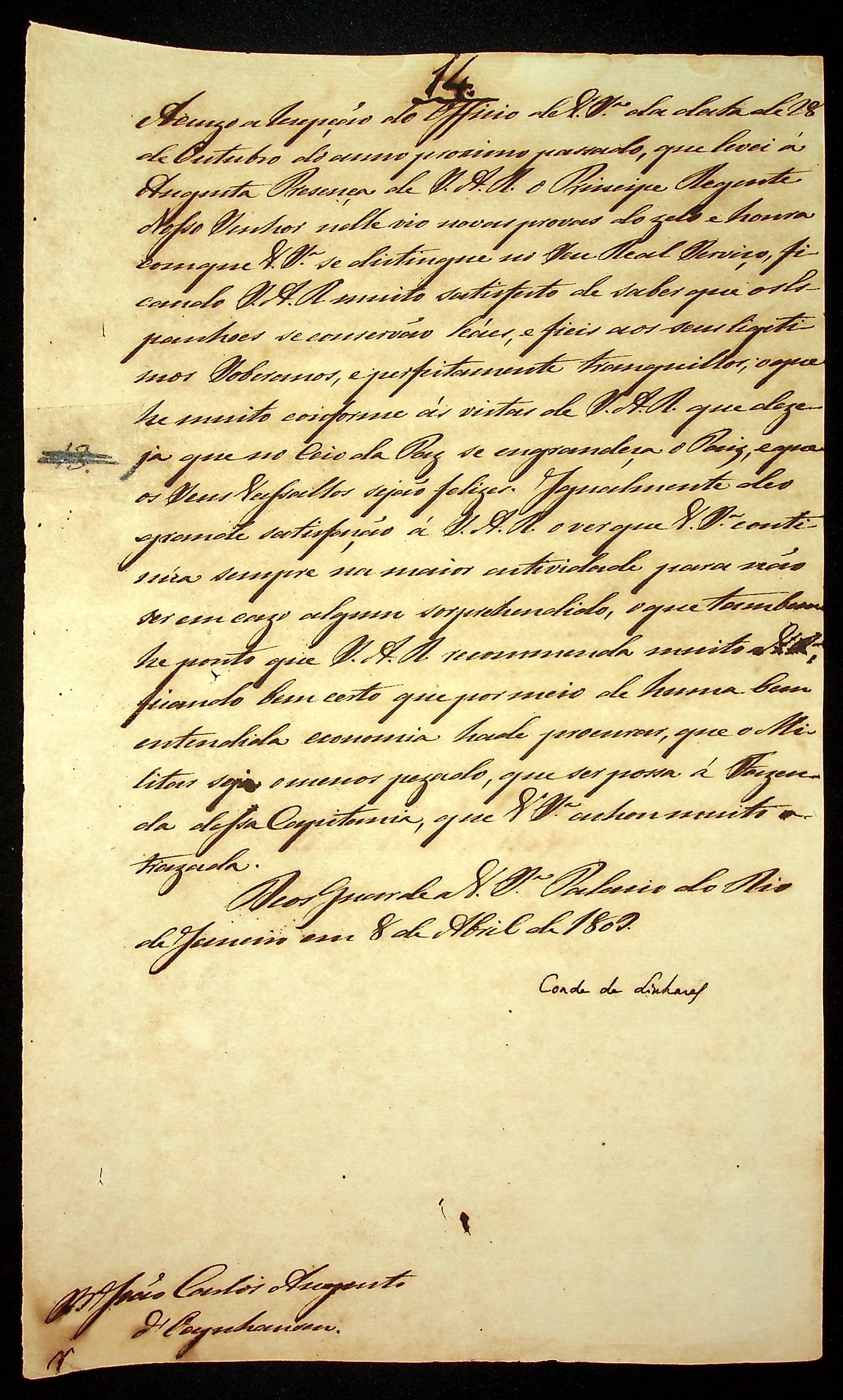 AVISO RÉGIO do Conde de Linhares ao [Governador e Capitão-General da Capitania de Mato Grosso] João Carlos Augusto D’Oeynhausen e Gravemberg.