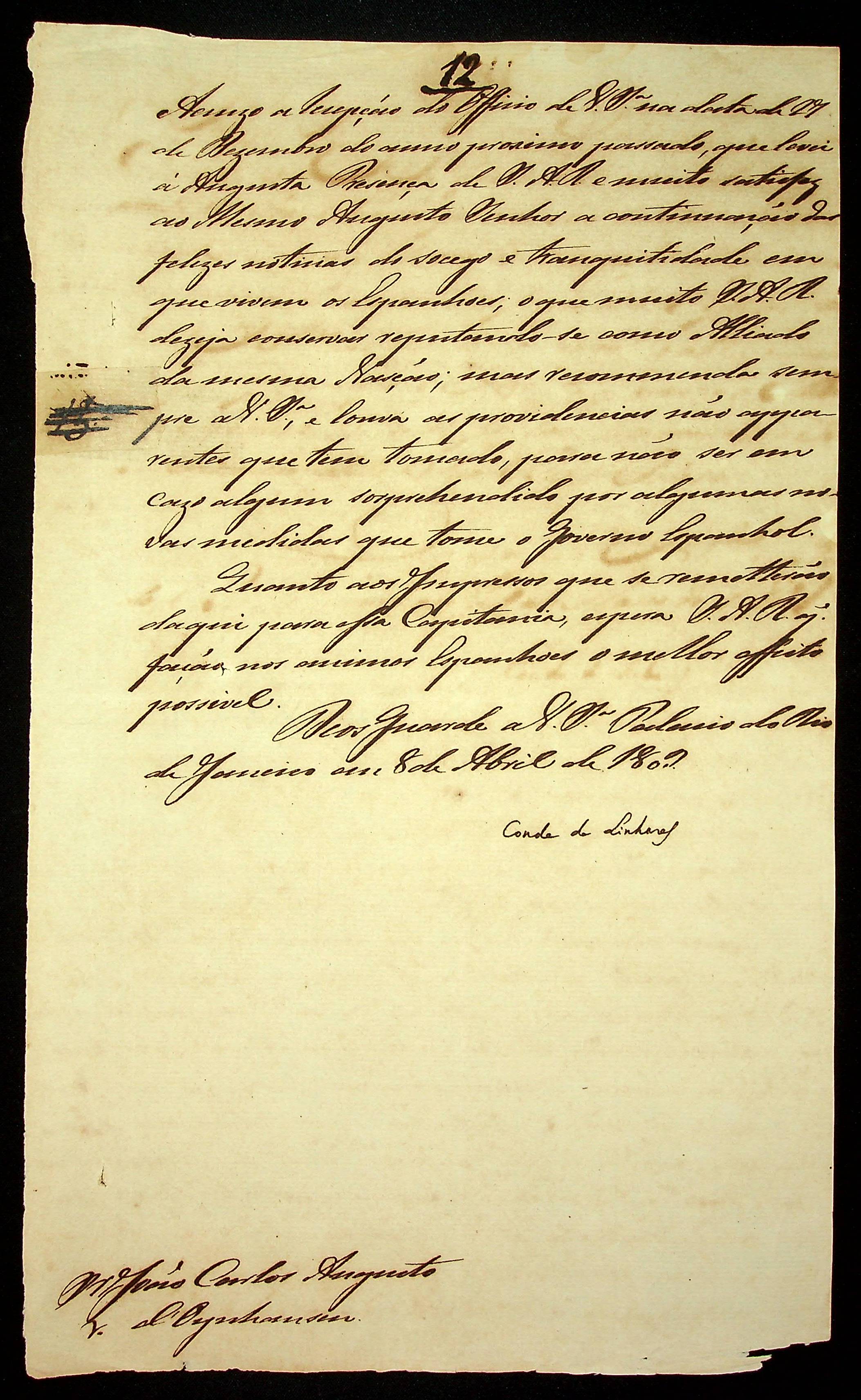 AVISO RÉGIO do Conde de Linhares ao [Governador e Capitão-General da Capitania de Mato Grosso] João Carlos Augusto D’Oeynhausen e Gravemberg.