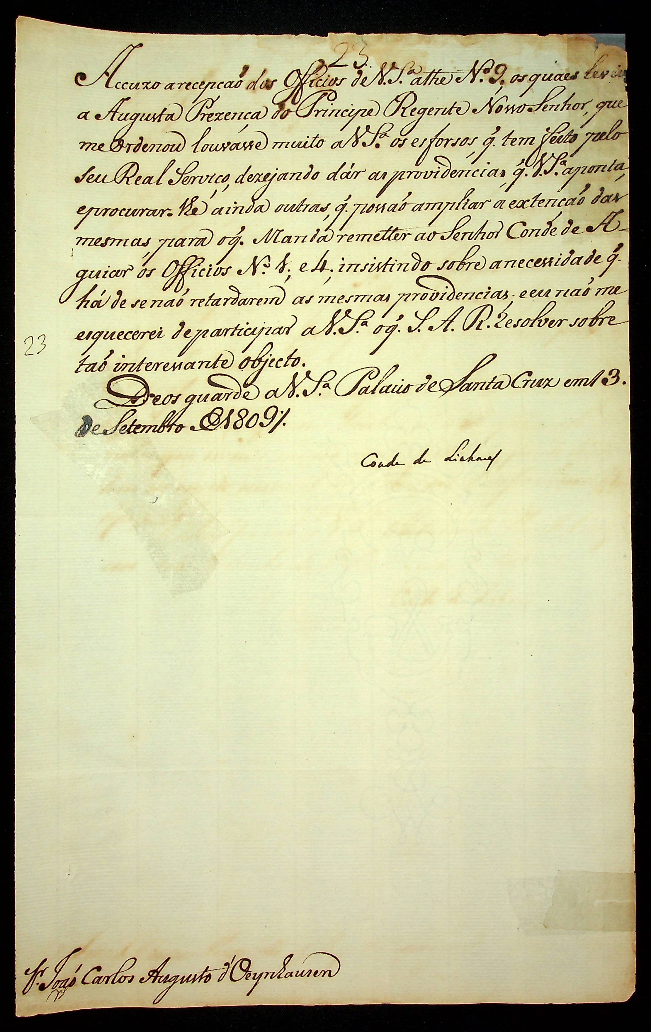 AVISO RÉGIO do Conde de Linhares ao [Governador e Capitão-General da Capitania de Mato Grosso] João Carlos Augusto D’Oeynhausen e Gravemberg.