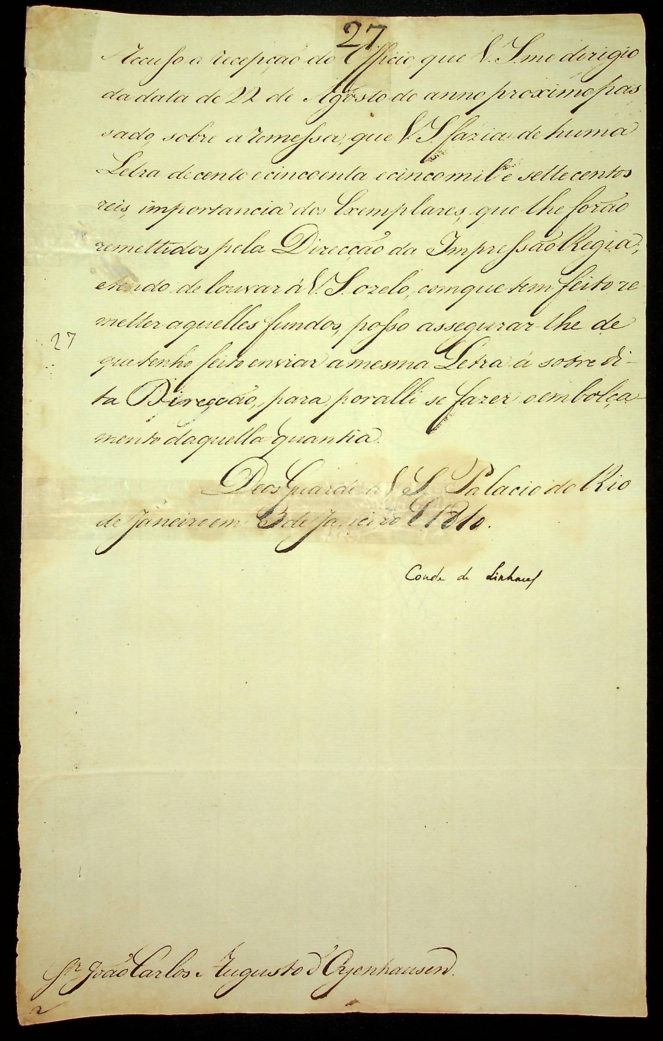 AVISO RÉGIO do Conde de Linhares ao [Governador e Capitão-General da Capitania de Mato Grosso] João Carlos Augusto D’Oeynhausen e Gravemberg.