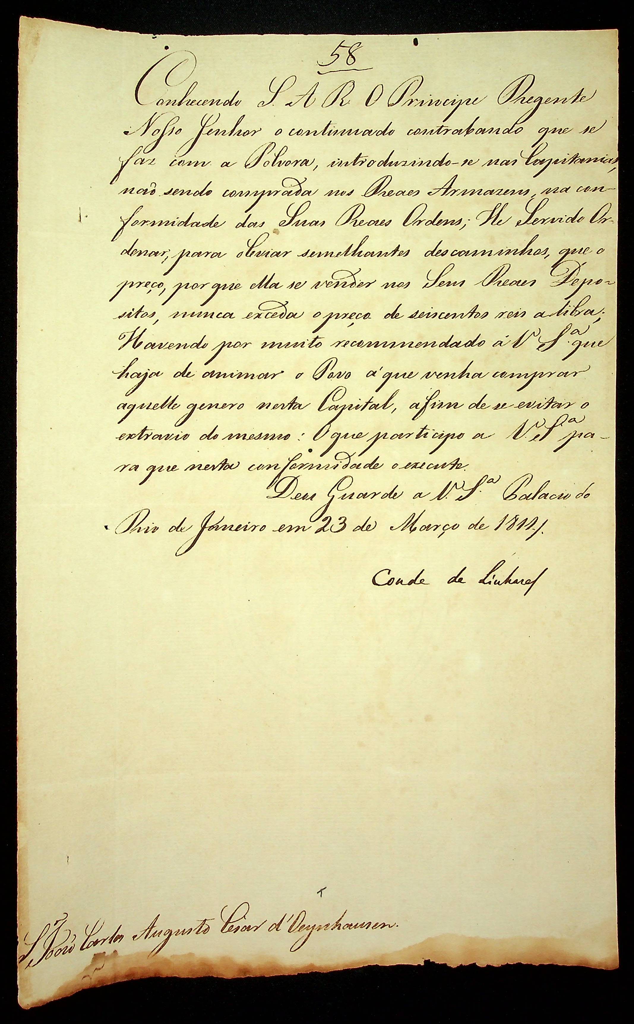AVISO RÉGIO do Conde de Linhares ao [Governador e Capitão-General da Capitania de Mato Grosso] João Carlos Augusto D’Oeynhausen e Gravemberg.