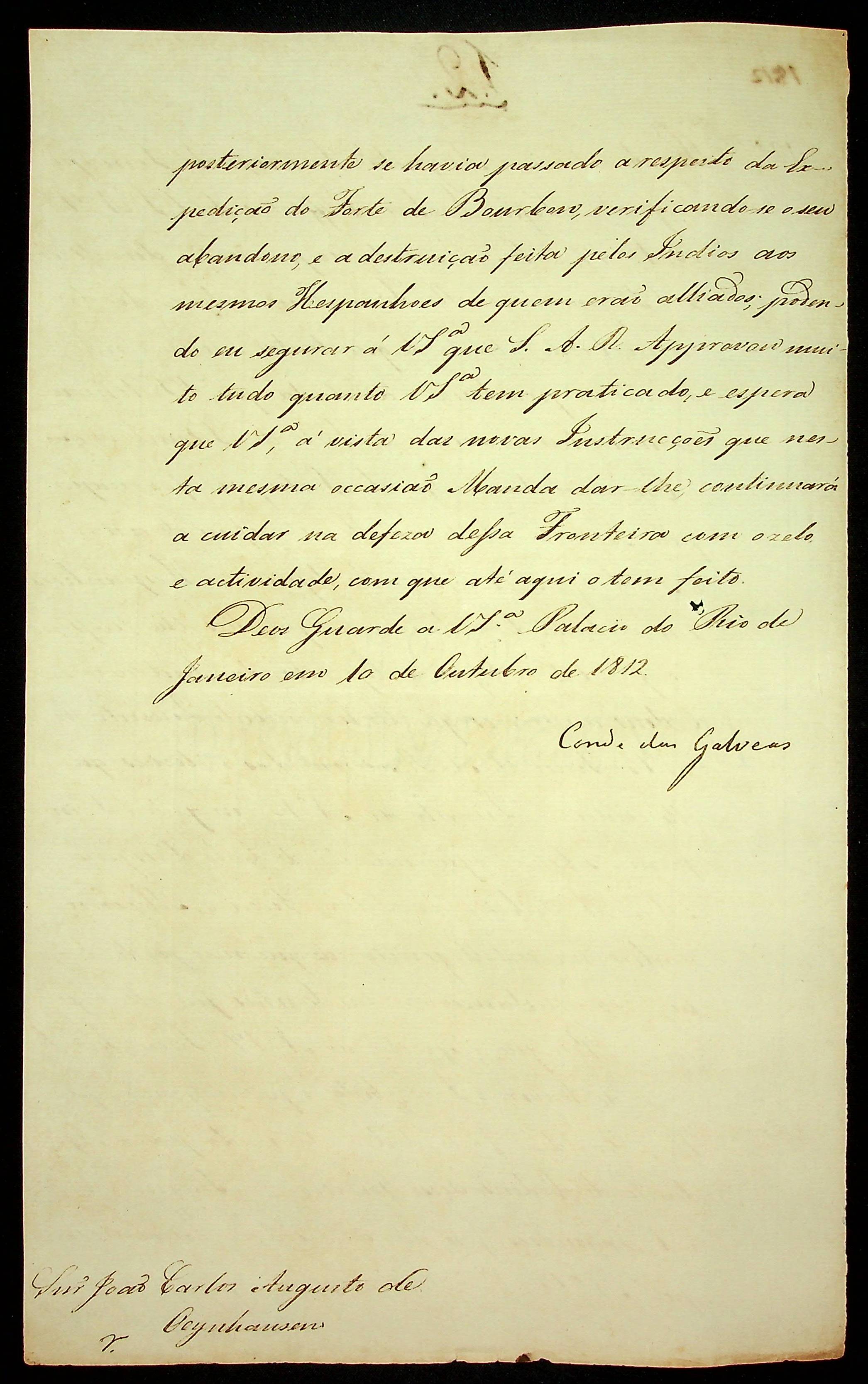 AVISO RÉGIO do Conde de Galveas ao [Governador e Capitão-General da Capitania de Mato Grosso] João Carlos Augusto D’Oeynhausen e Gravemberg.