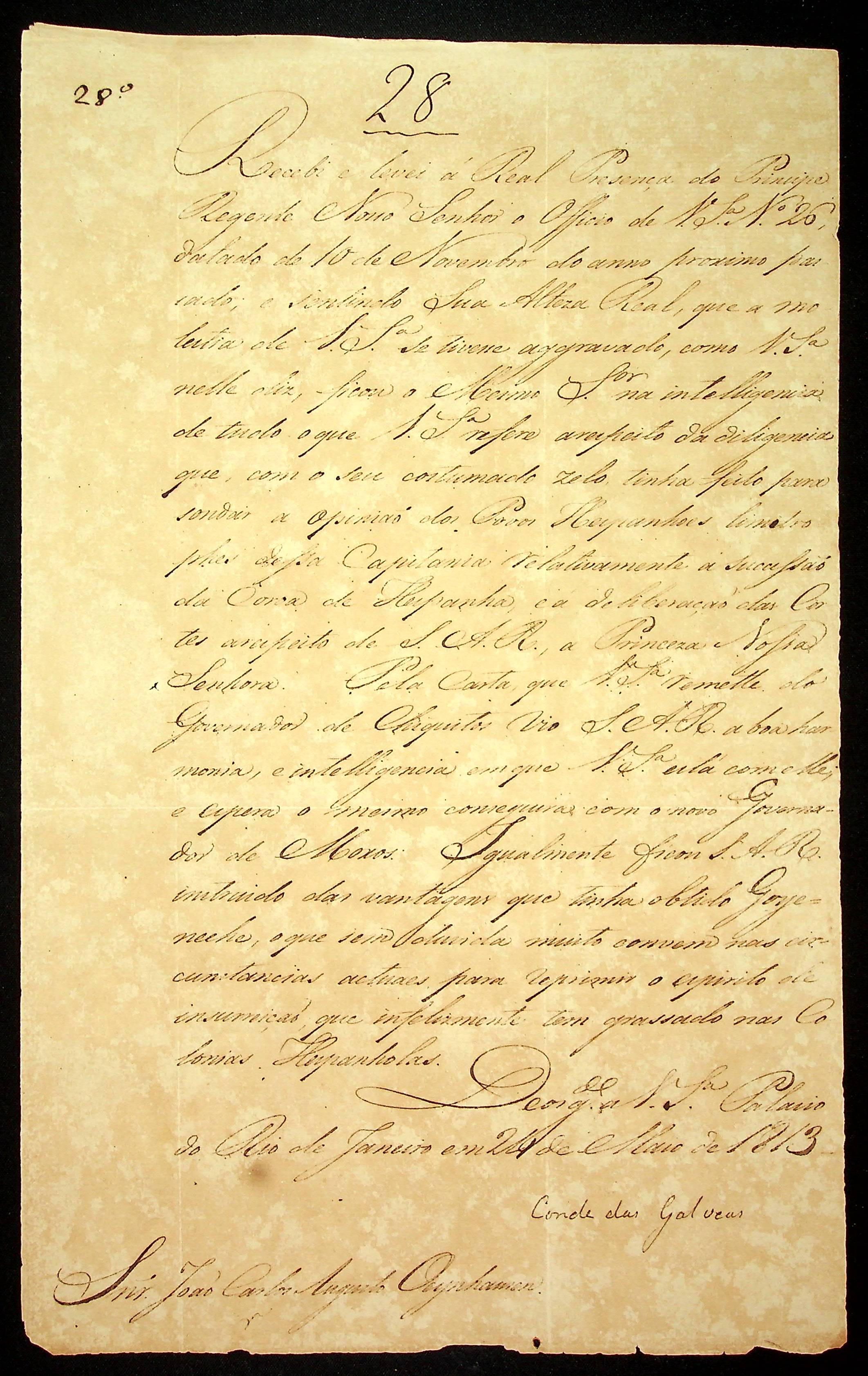 AVISO RÉGIO do Conde de Galveas ao [Governador e Capitão-General da Capitania de Mato Grosso] João Carlos Augusto D’Oeynhausen e Gravemberg.