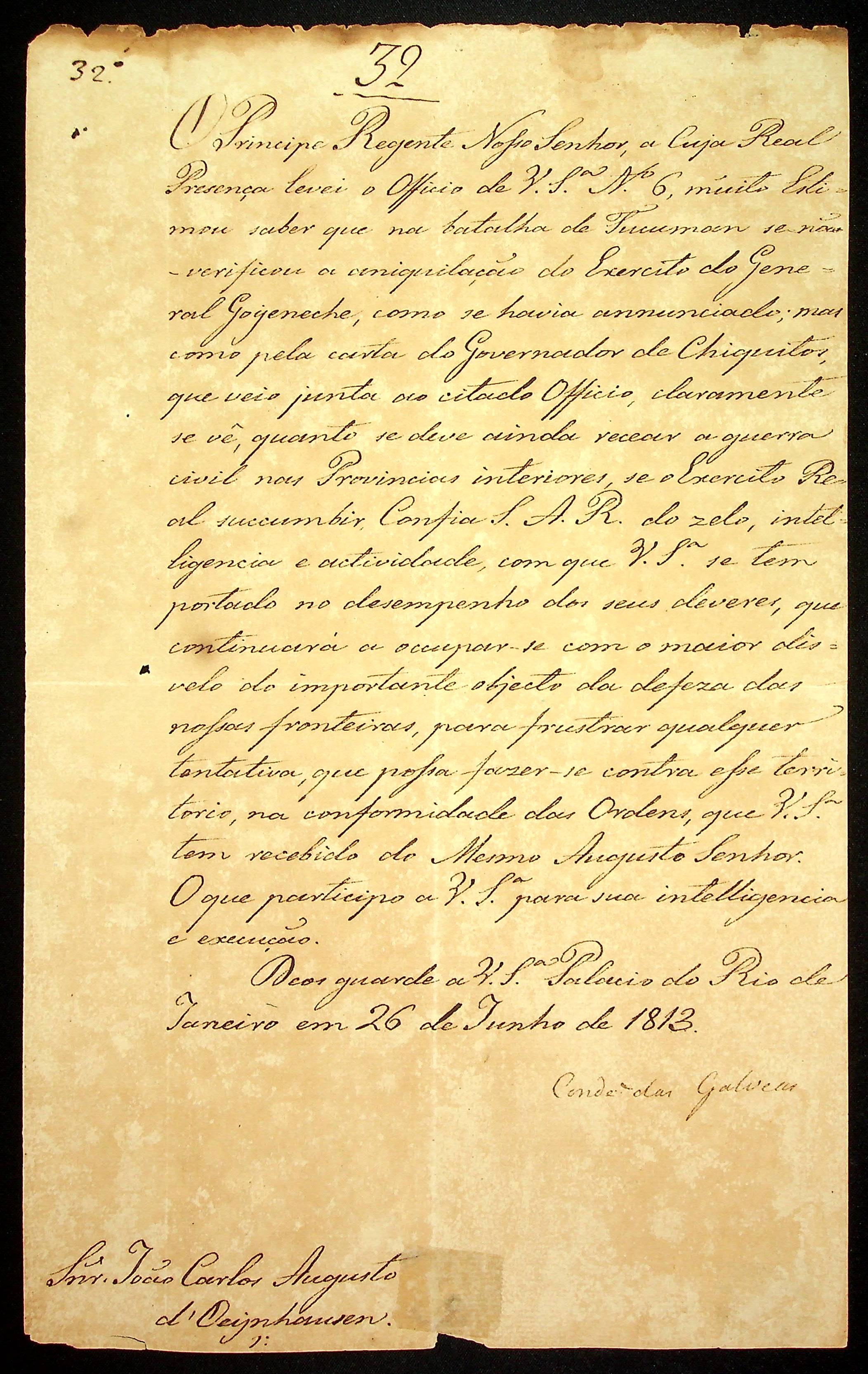 AVISO RÉGIO do Conde de Galveas ao [Governador e Capitão-General da Capitania de Mato Grosso] João Carlos Augusto D’Oeynhausen e Gravemberg.