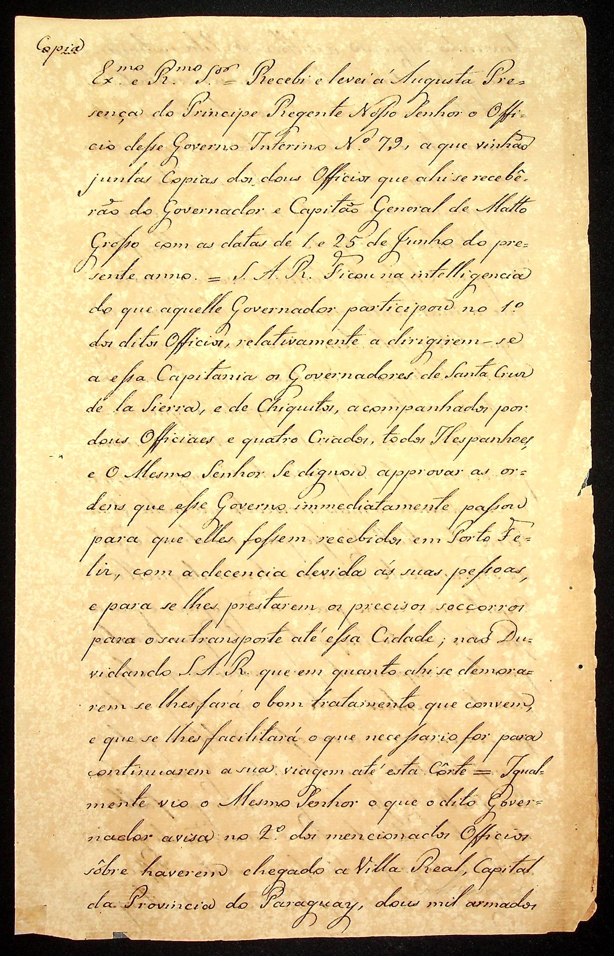AVISO RÉGIO (cópia) do Conde das Galveas para o Bispo de São Paulo.