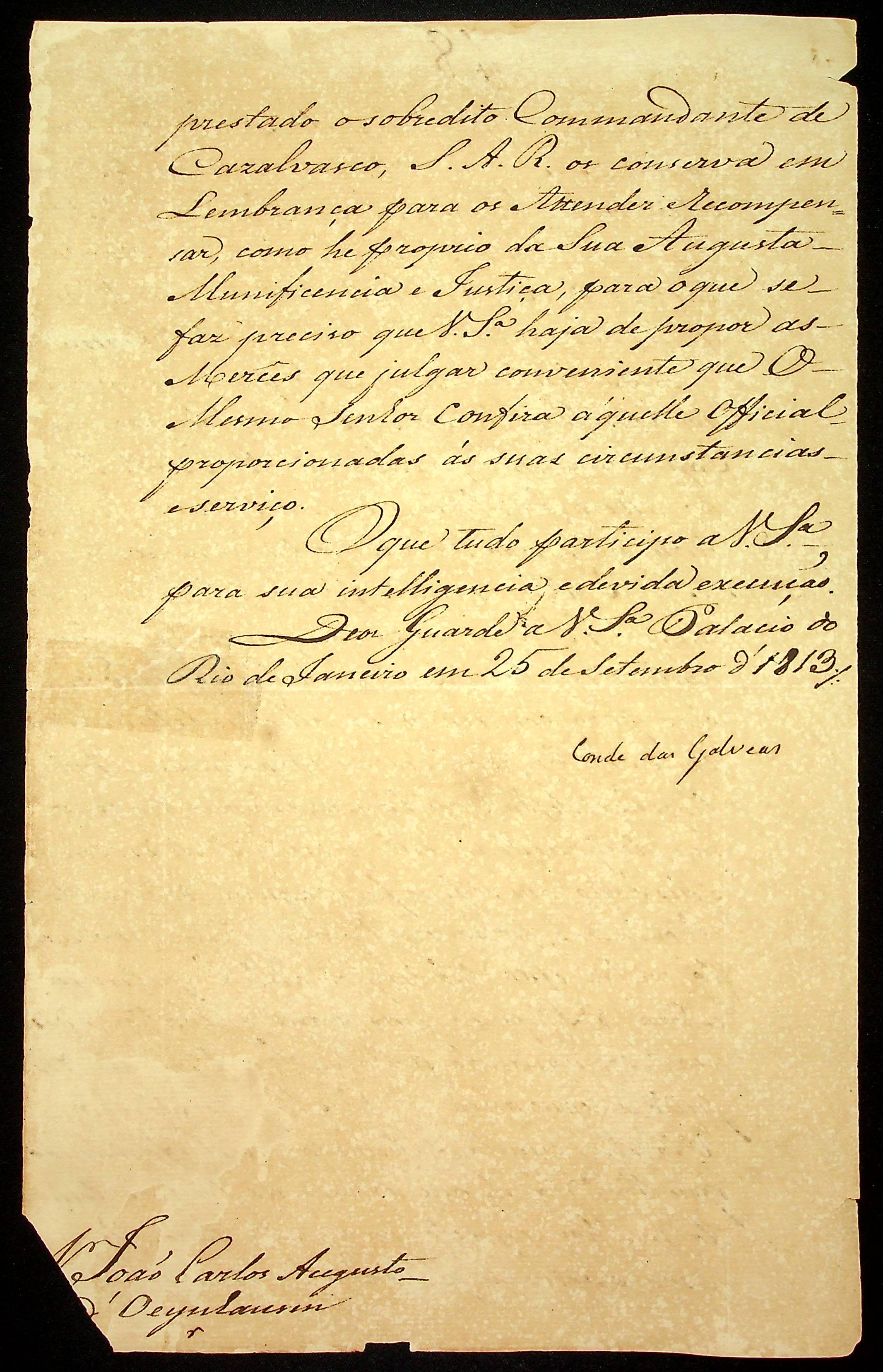 AVISO RÉGIO do Conde das Galveas ao [Governador e Capitão-General da Capitania de Mato Grosso] João Carlos Augusto D’Oeynhausen e Gravemberg.