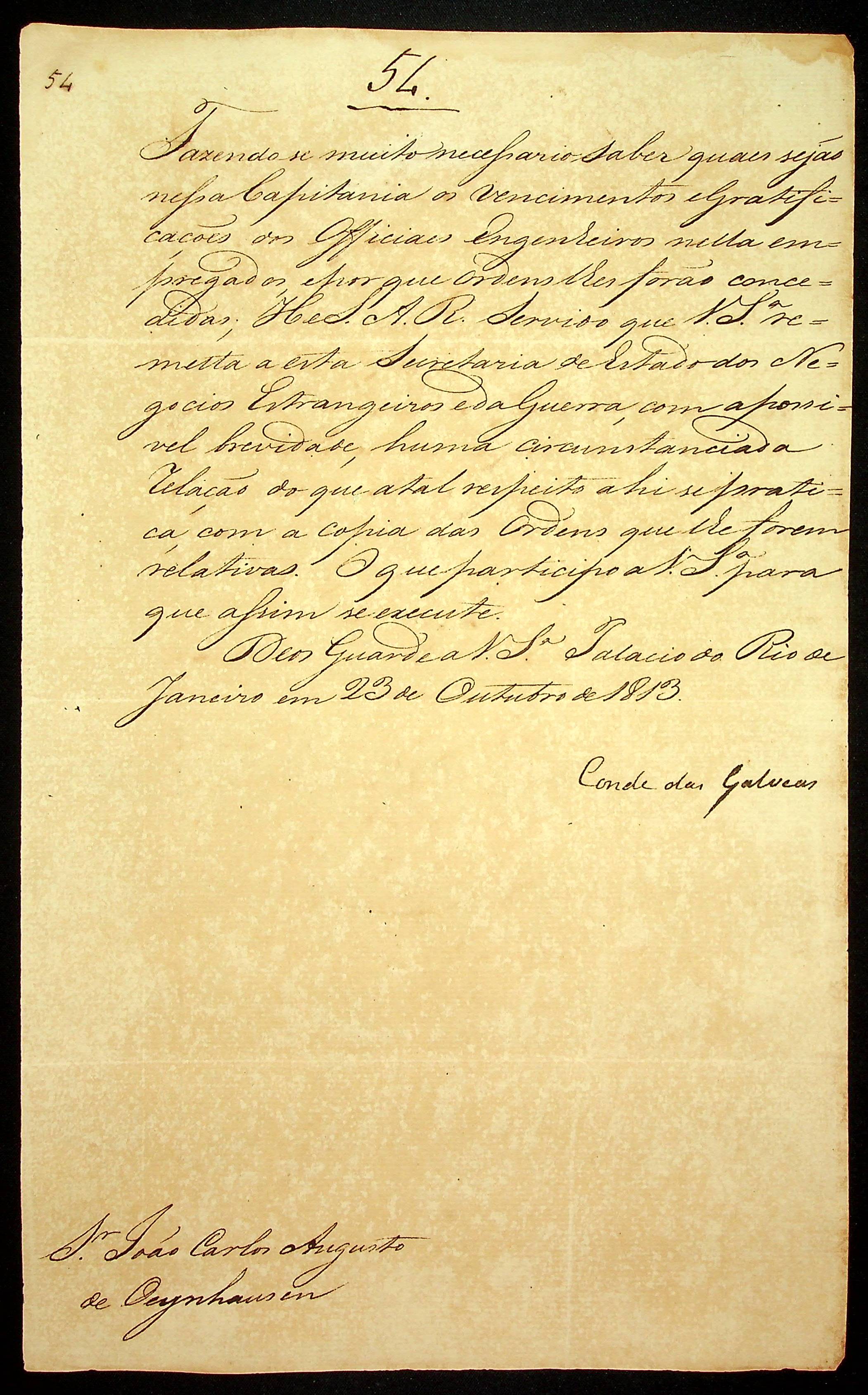 AVISO RÉGIO do Conde das Galveas ao [Governador e Capitão-General da Capitania de Mato Grosso] João Carlos Augusto D’Oeynhausen e Gravemberg.