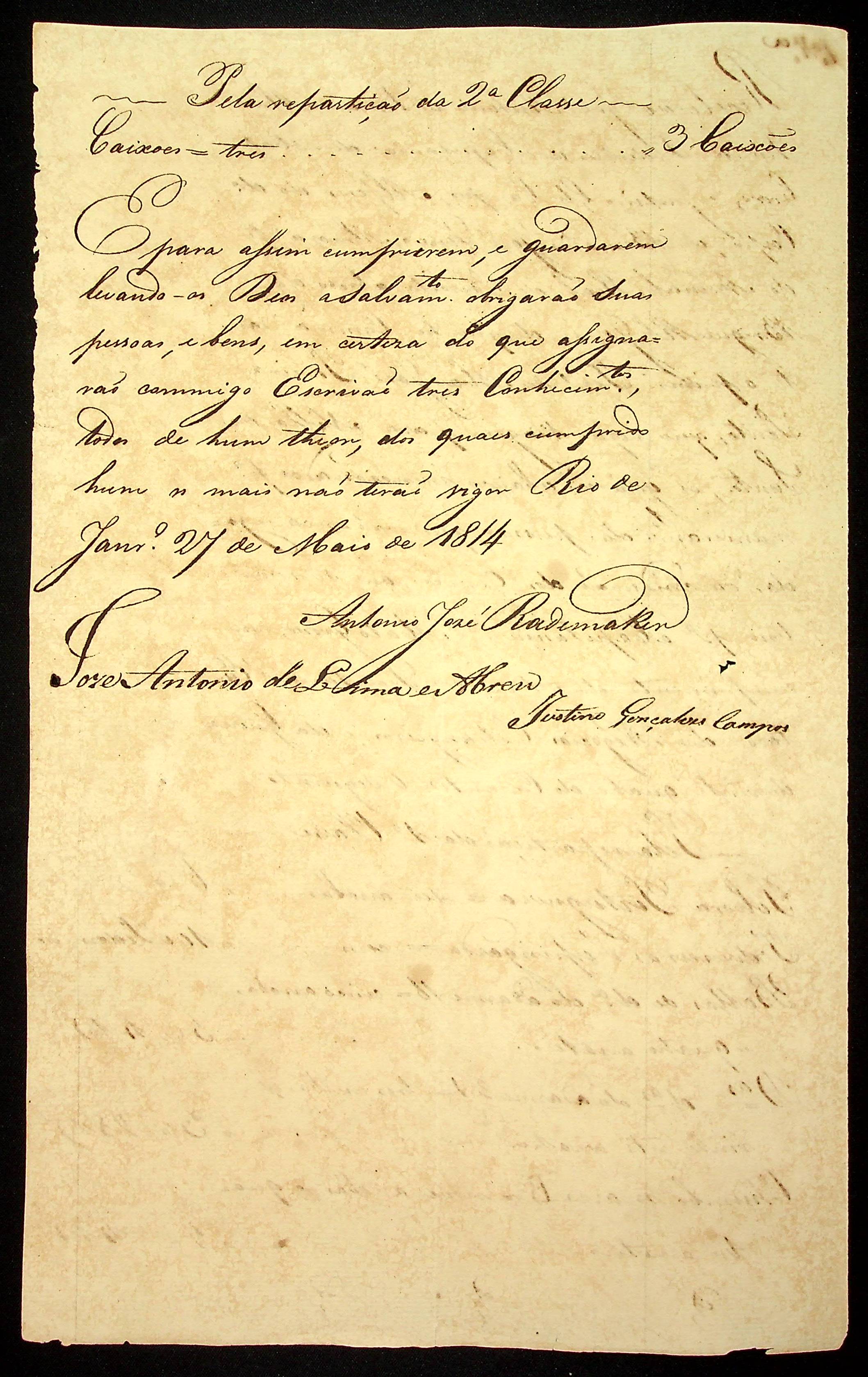 AVISO RÉGIO do Marques de Aguiar ao [Governador e Capitão-General da Capitania de Mato Grosso] João Carlos Augusto D’Oeynhausen e Gravemberg.