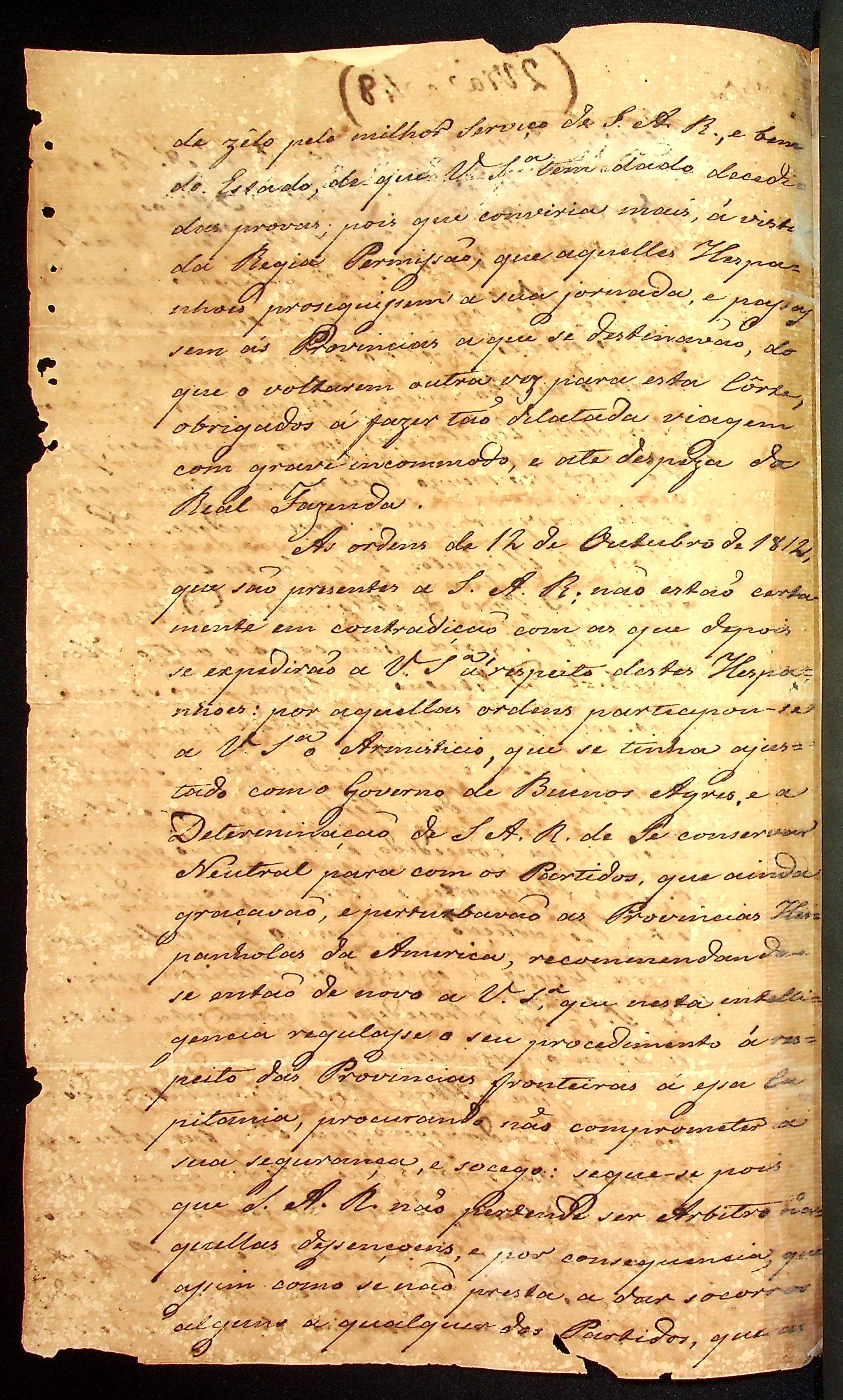 AVISO RÉGIO do Marques de Aguiar ao [Governador e Capitão-General da Capitania de Mato Grosso] João Carlos Augusto D’Oeynhausen e Gravemberg.