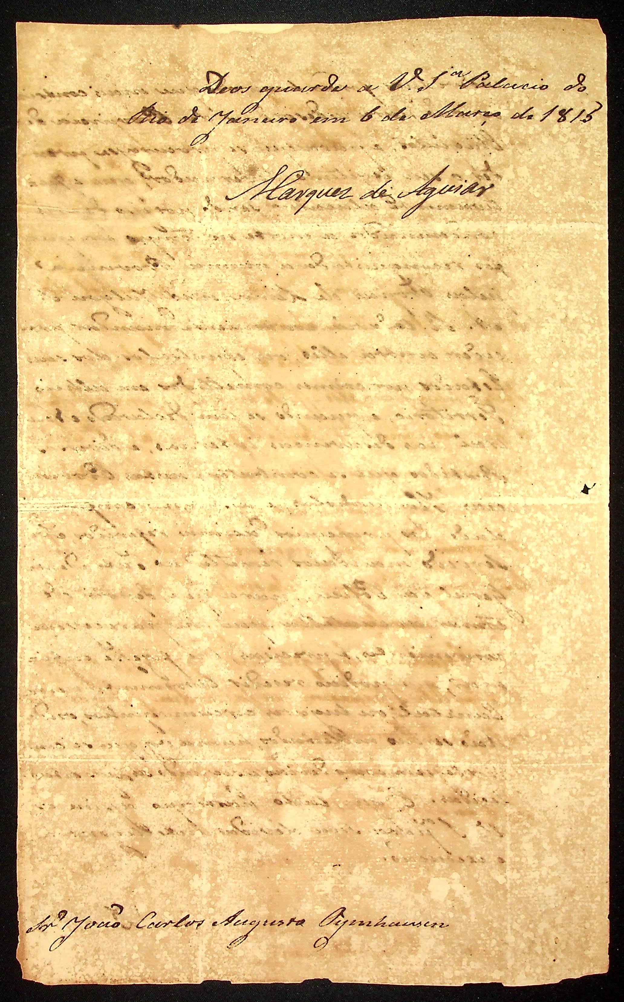 AVISO RÉGIO do Marques de Aguiar ao [Governador e Capitão-General da Capitania de Mato Grosso] João Carlos Augusto D’Oeynhausen e Gravemberg.