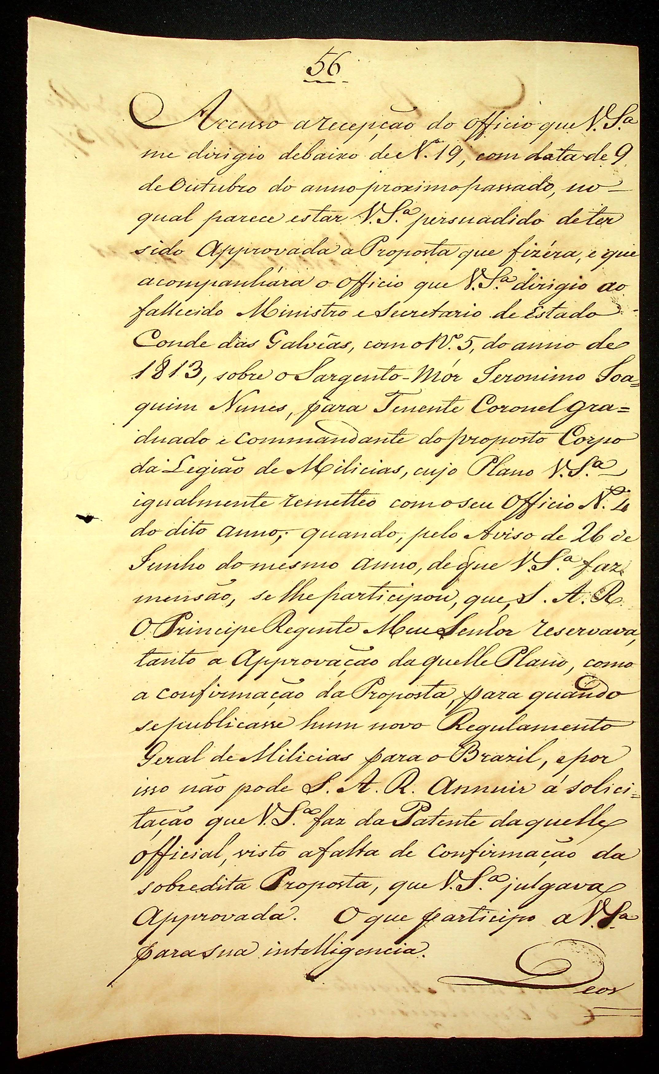 AVISO RÉGIO do Marques de Aguiar ao [Governador e Capitão-General da Capitania de Mato Grosso] João Carlos Augusto D’Oeynhausen e Gravemberg.
