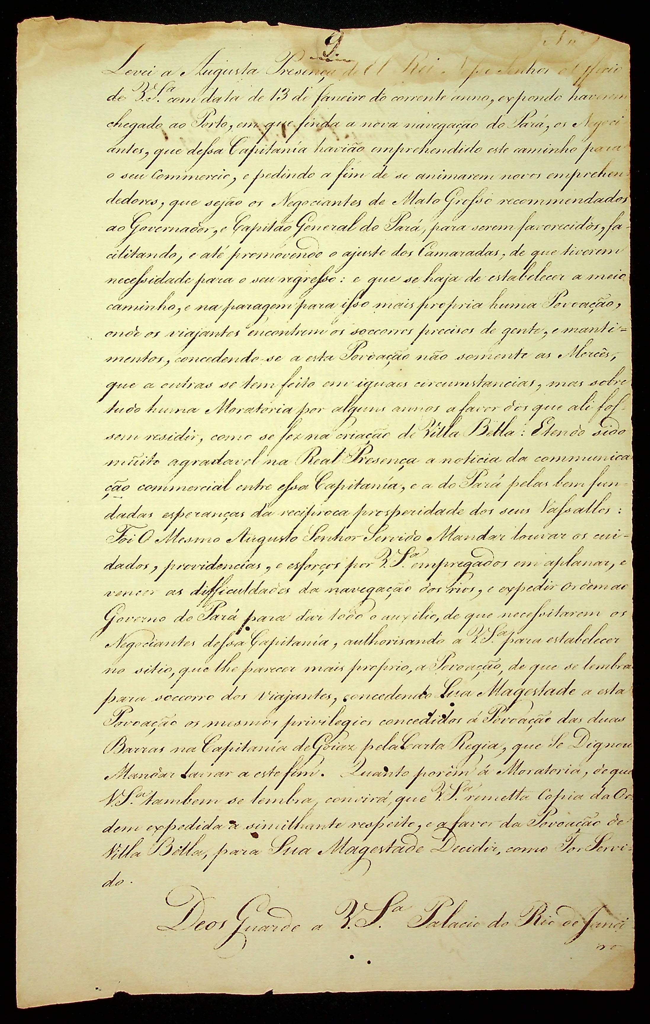 AVISO RÉGIO de Thomás Antônio Villanova Portugal ao [Governador e Capitão General da Capitania de Mato Grosso] João Carlos Augusto de Oeynhausen e Gravemberg.