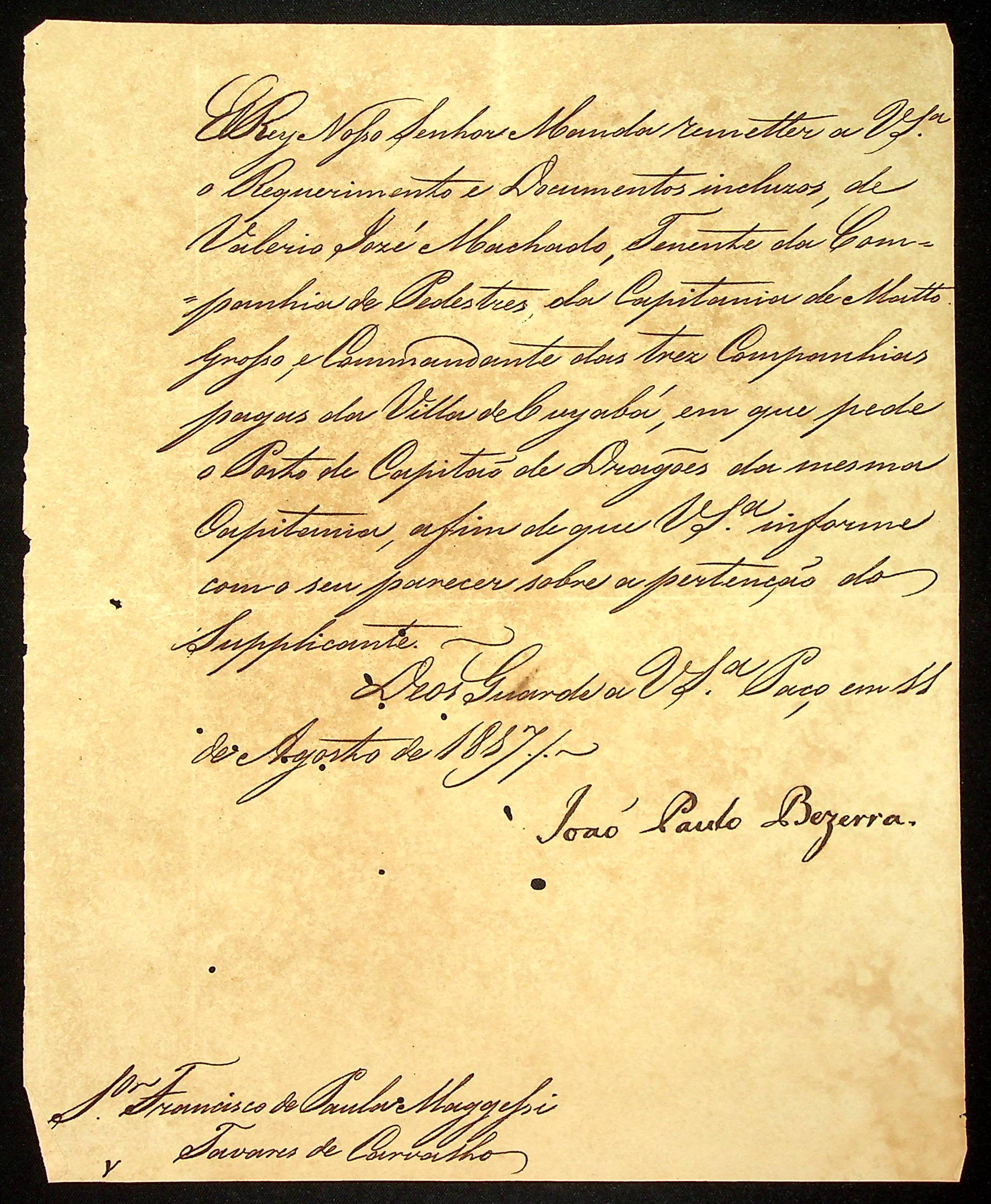 AVISO RÉGIO do [Presidente do Real Erário] João Paulo Bezerra ao [Governador e Capitão General da Capitania de Mato Grosso] João Carlos Augusto de Oeynhausen e Gravemberg.