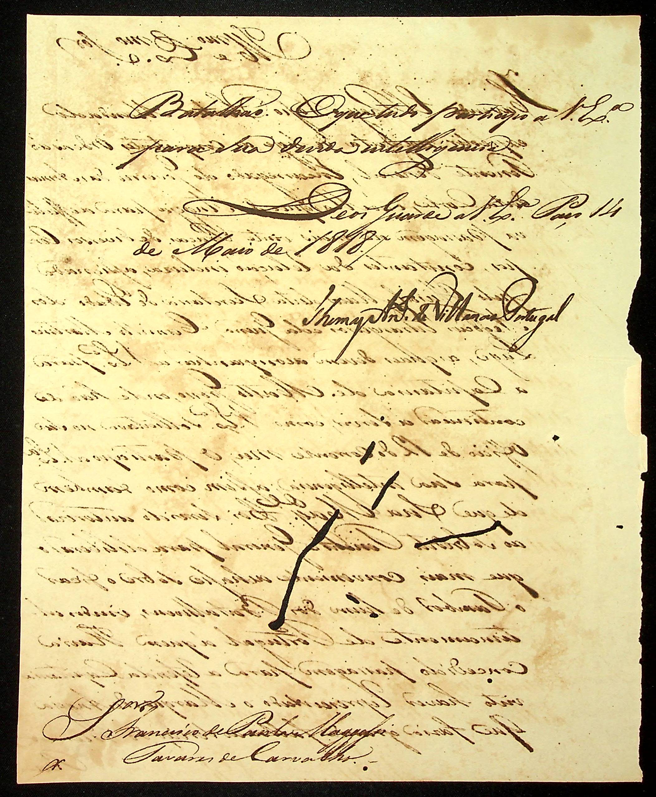 AVISO RÉGIO de Thomas Antônio de Vilanova Portugal ao [Governador e Capitão General da Capitania de Mato Grosso] Francisco de Paula Magessi Tavares de Carvalho.