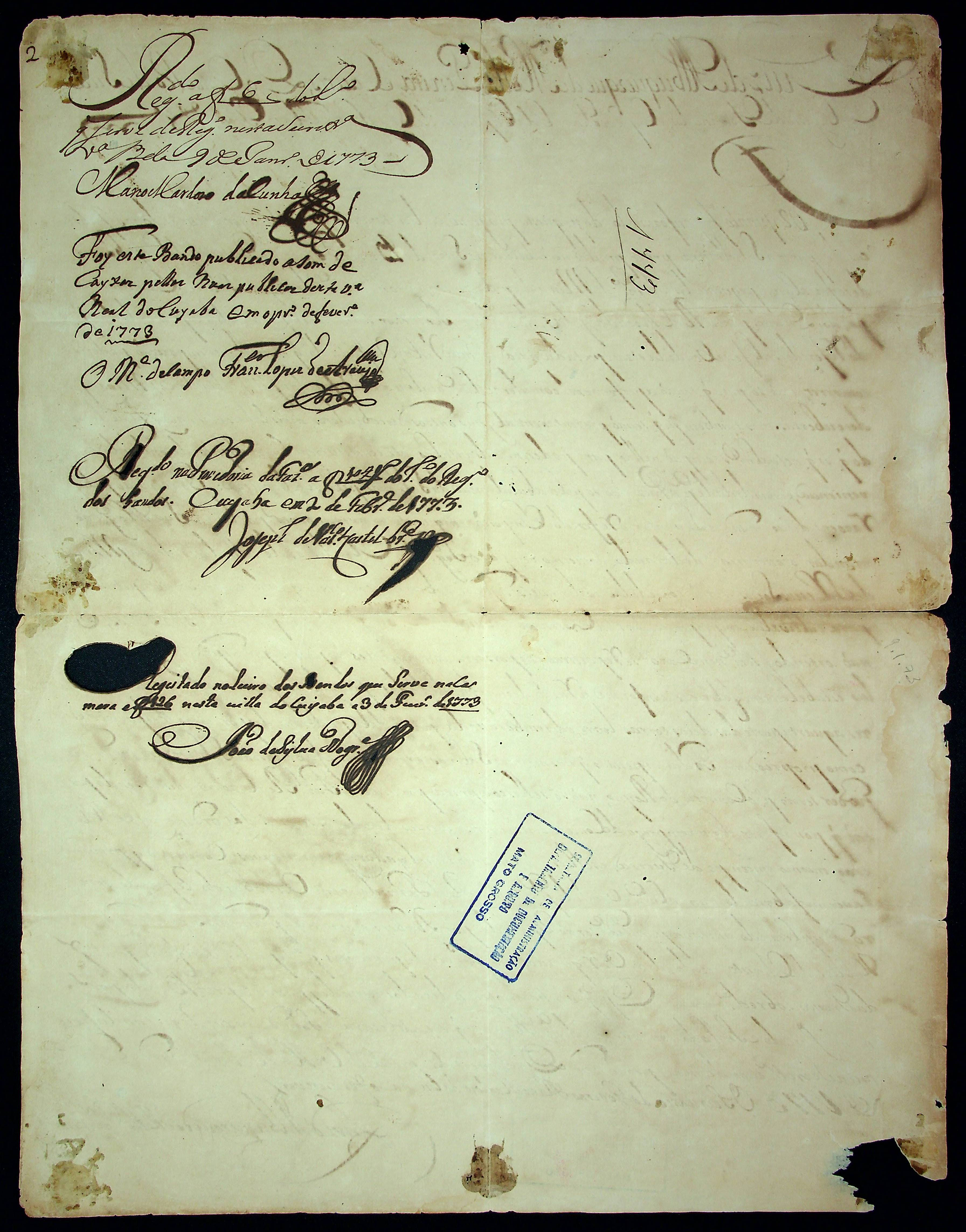 BANDO do Governador e Capitão General da Capitania de Mato Grosso Luiz de Albuquerque de Melo Pereira e Cáceres.