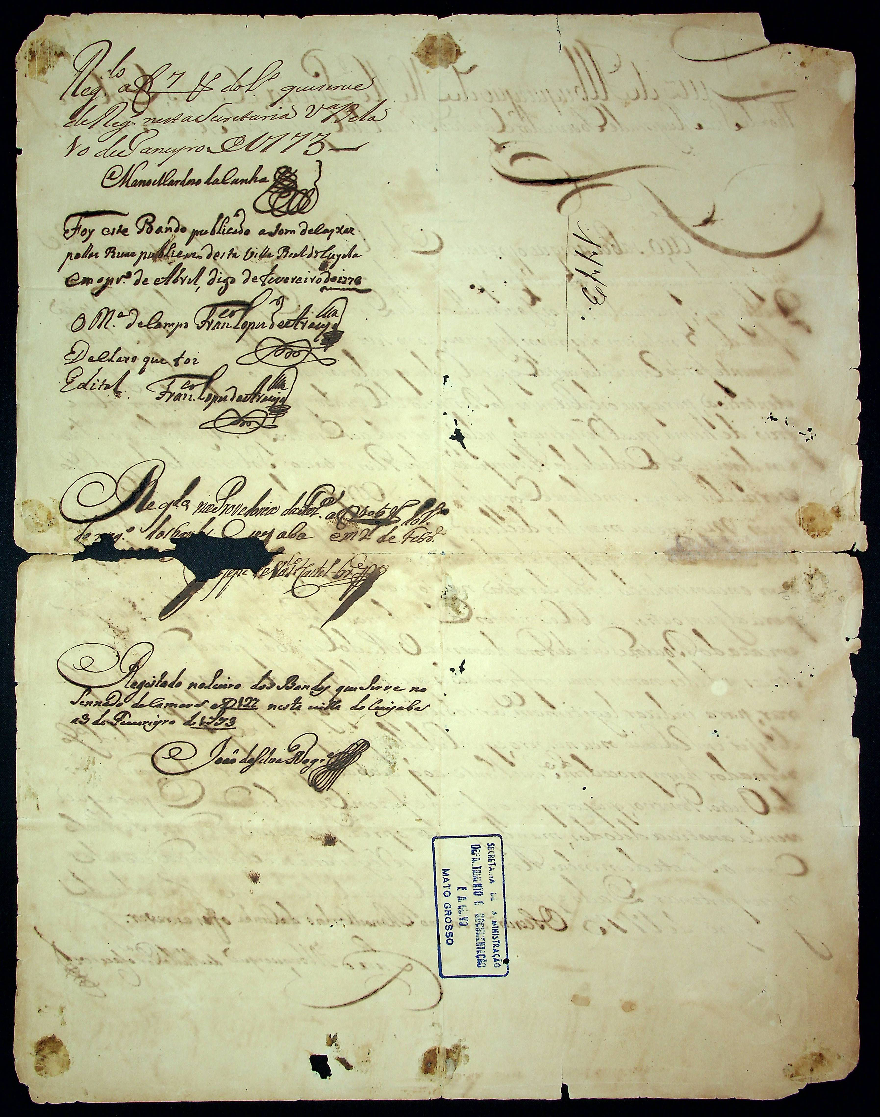 BANDO do Governador e Capitão General da Capitania de Mato Grosso Luís de Albuquerque de Melo Pereira e Cáceres.