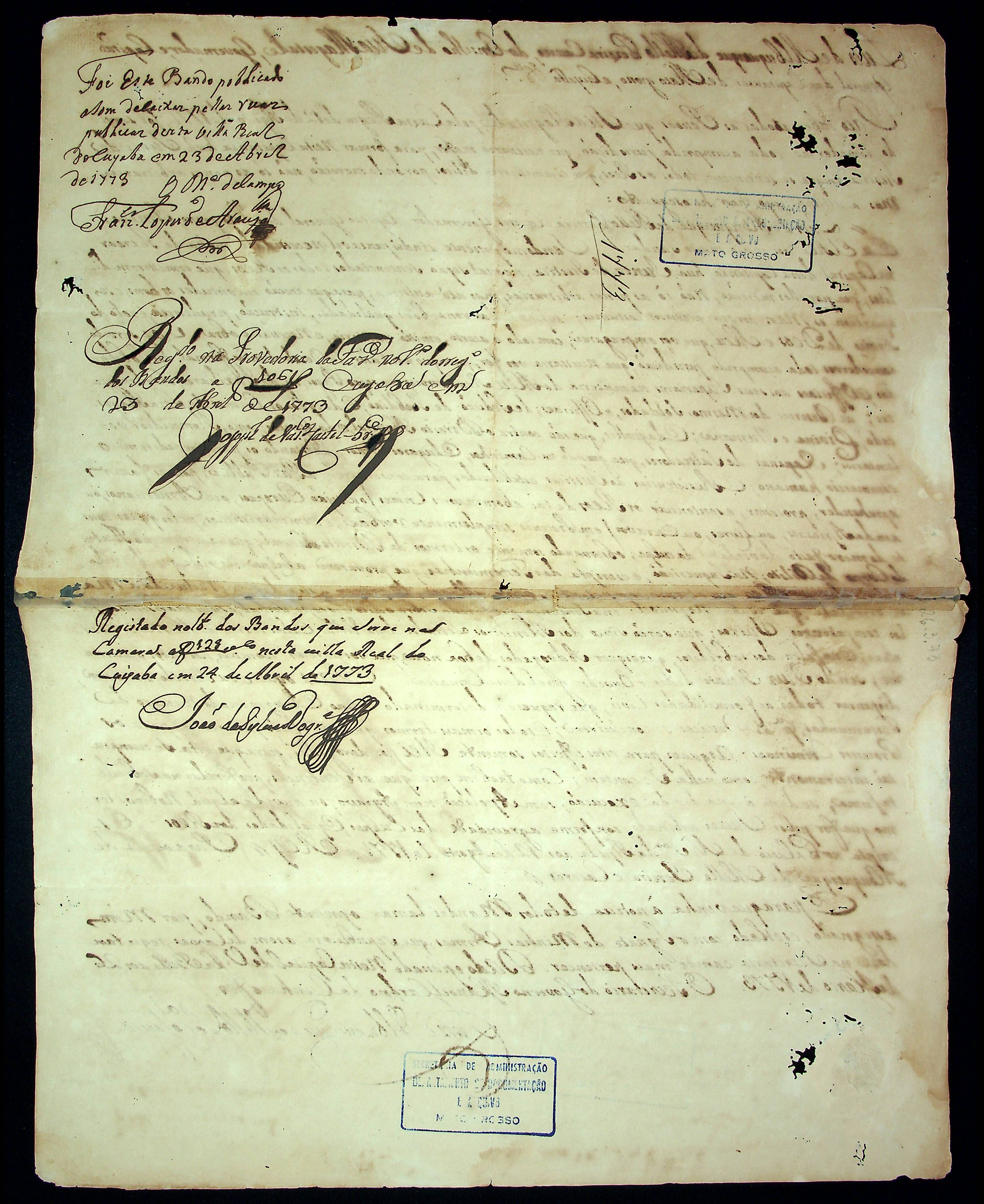 BANDO do Governador e Capitão General da Capitania de Mato Grosso Luís de Albuquerque de Melo Pereira e Cáceres.