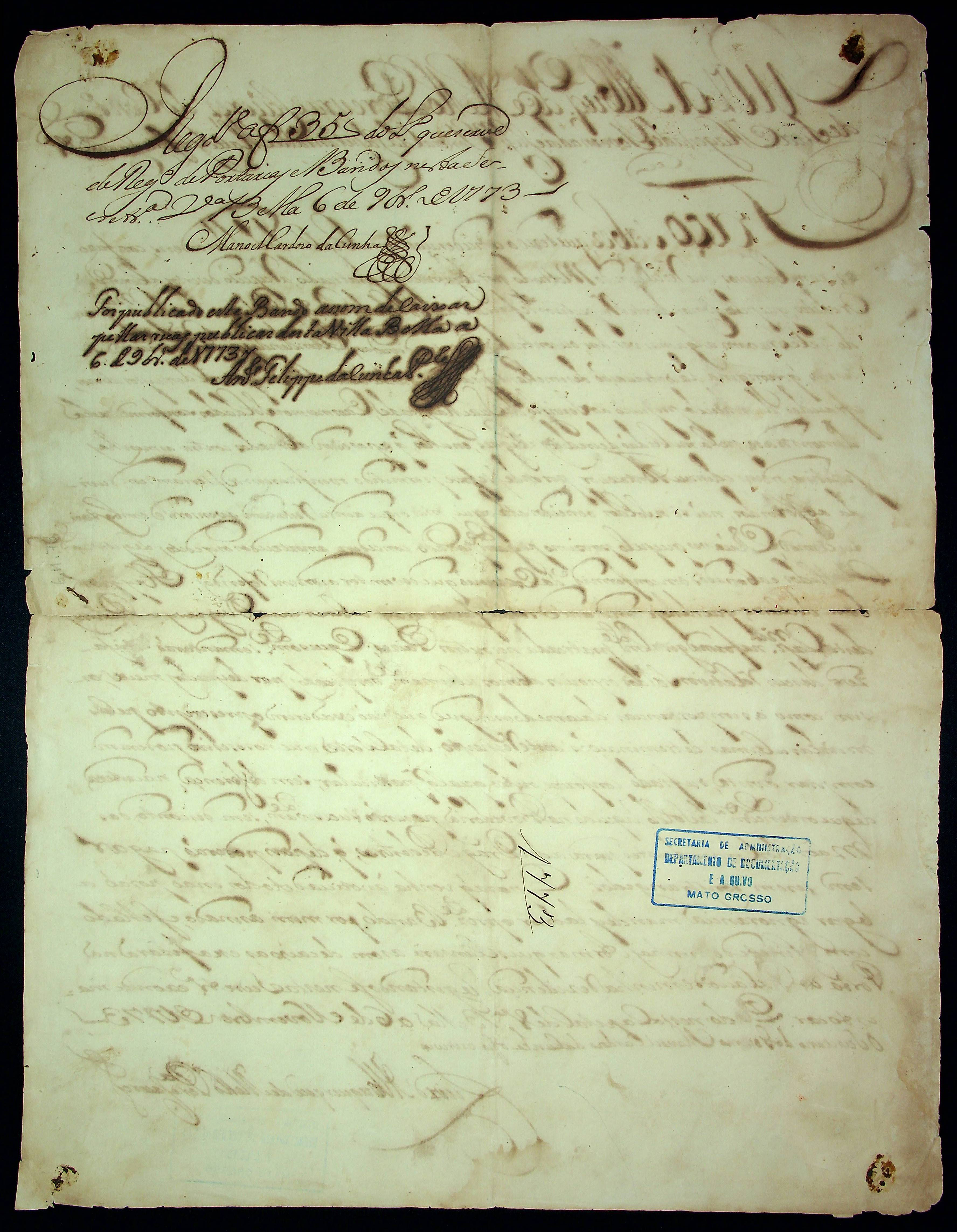 BANDO do Governador e Capitão General da Capitania de Mato Grosso Luís de Albuquerque de Melo Pereira e Cáceres.