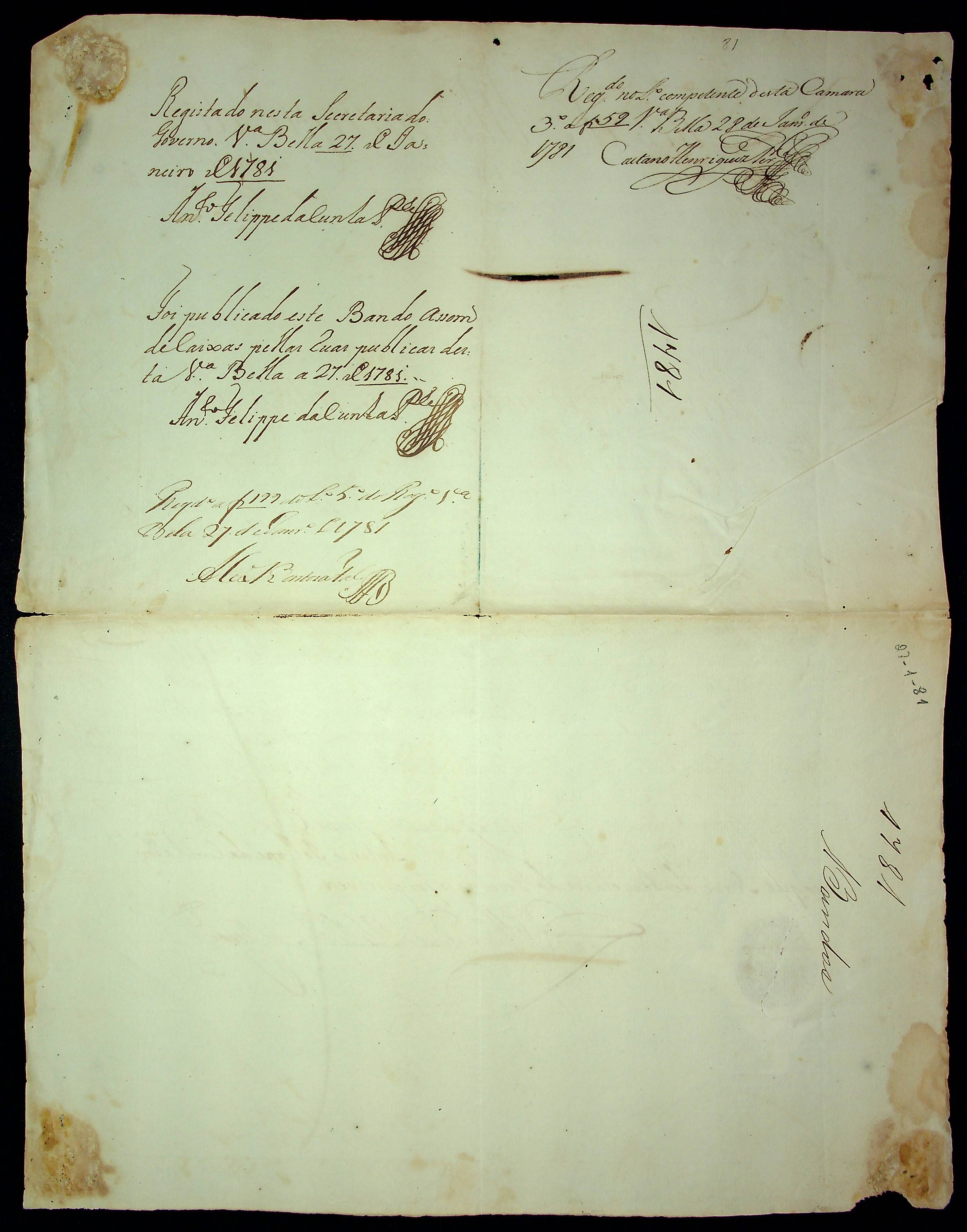 BANDO do Governador e Capitão General da Capitania de Mato Grosso Luiz de Albuquerque de Melo Pereira e Cáceres.