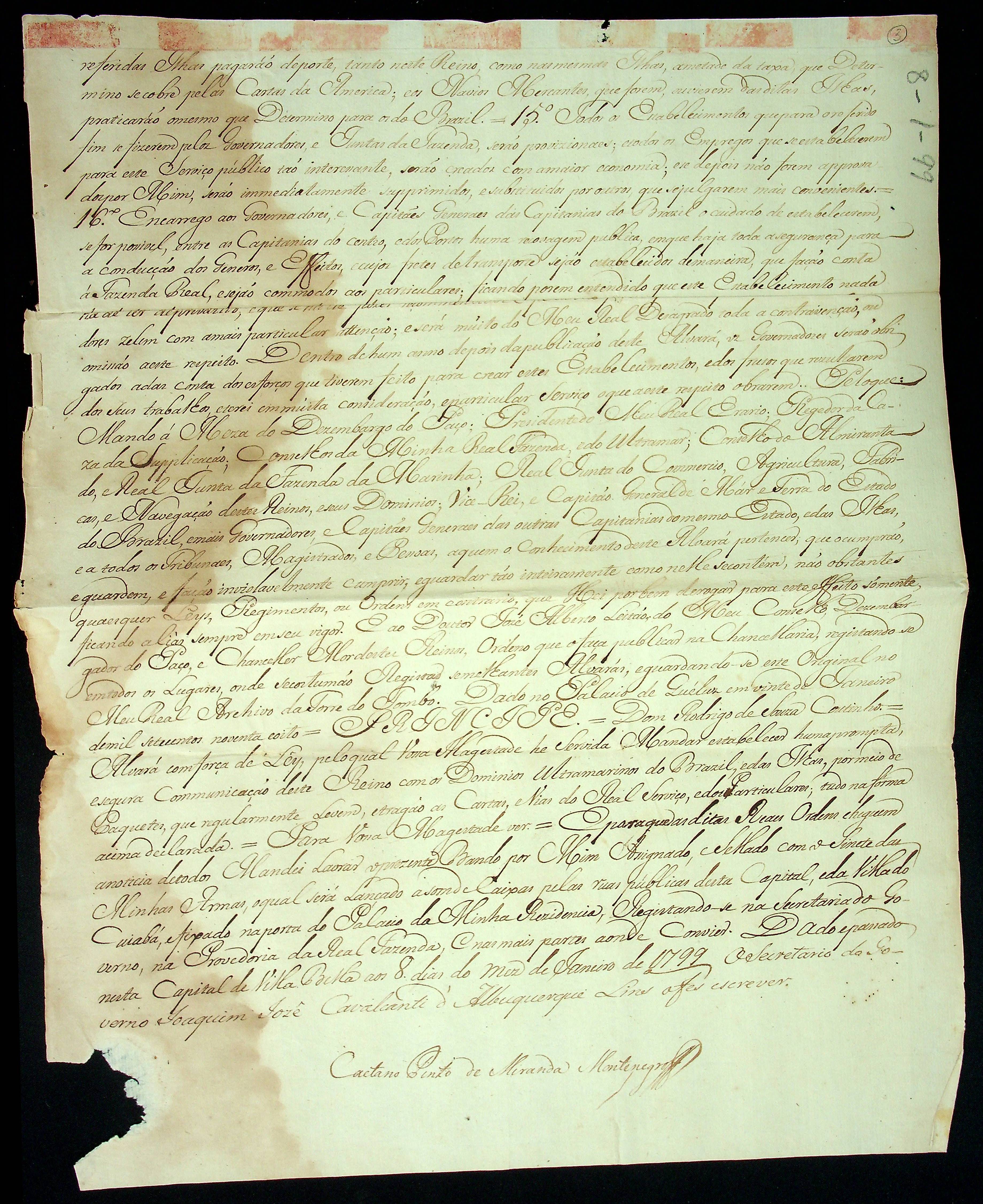 BANDO do Governador e Capitão General da Capitania de Mato Grosso Caetano Pinto de Miranda e Montenegro.