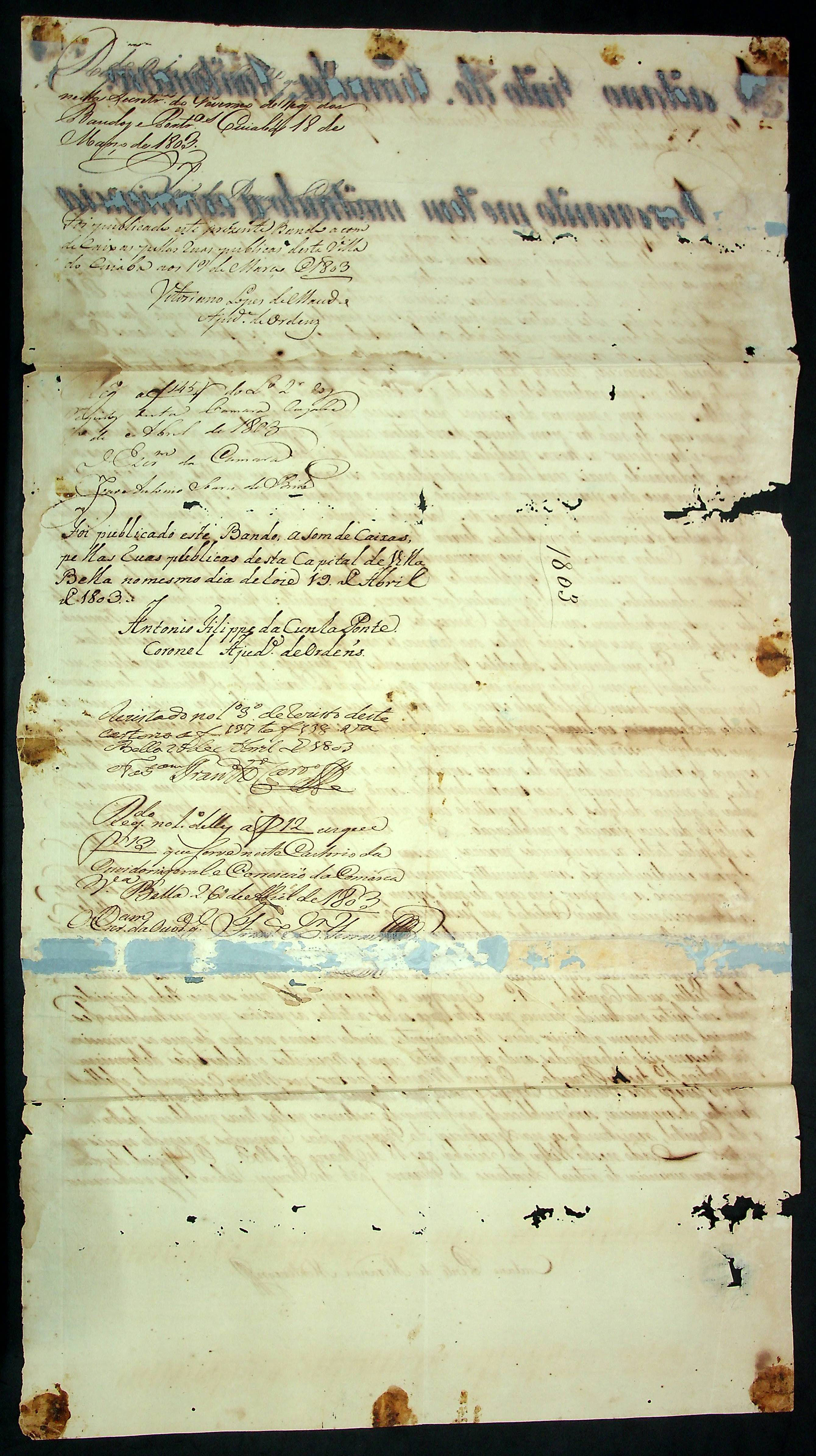 BANDO do Governador e Capitão General da Capitania de Mato Grosso Caetano Pinto de Miranda e Montenegro.