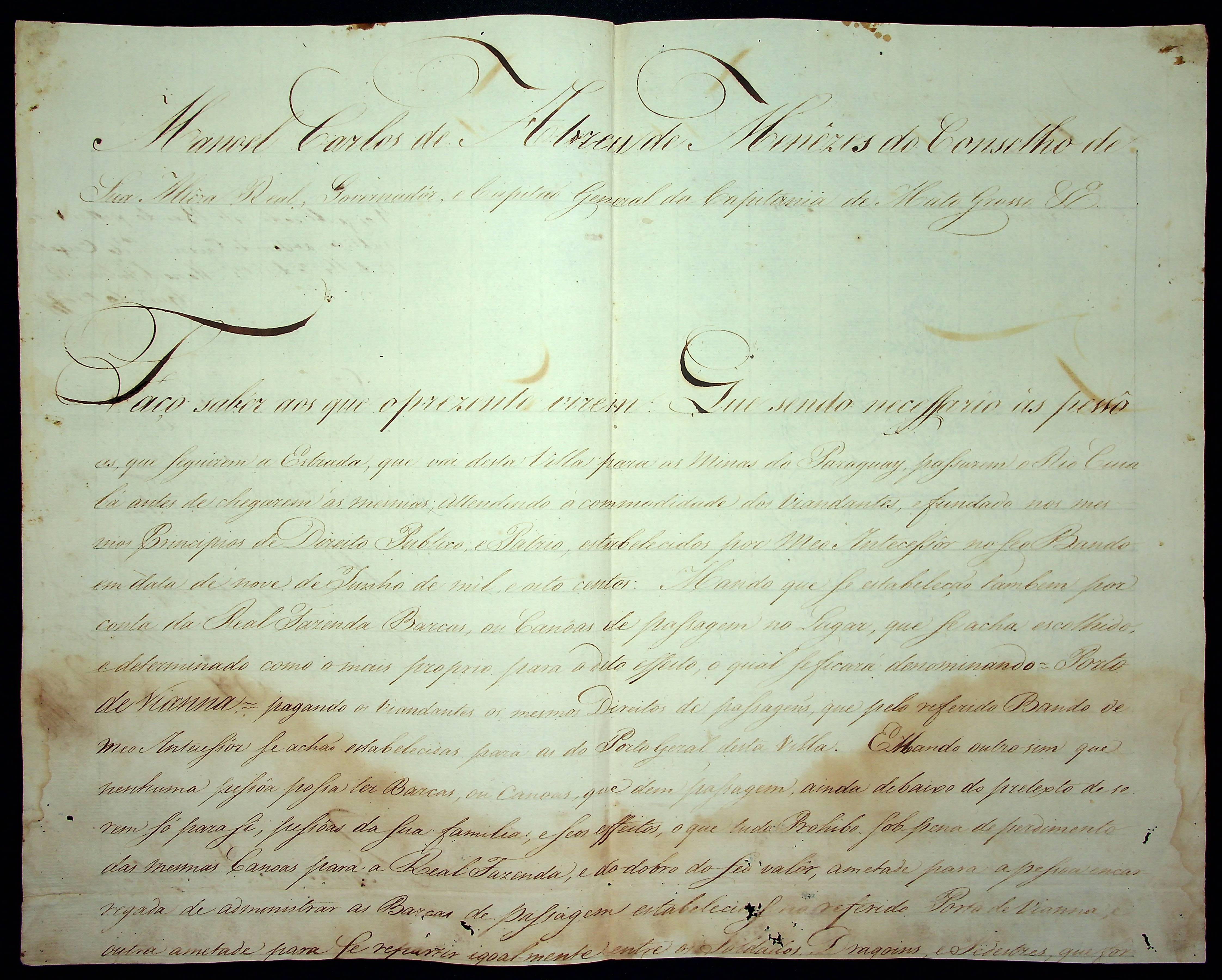 BANDO do Governador e Capitão General da Capitania de Mato Grosso Manoel Carlos de Abreu de Menezes.