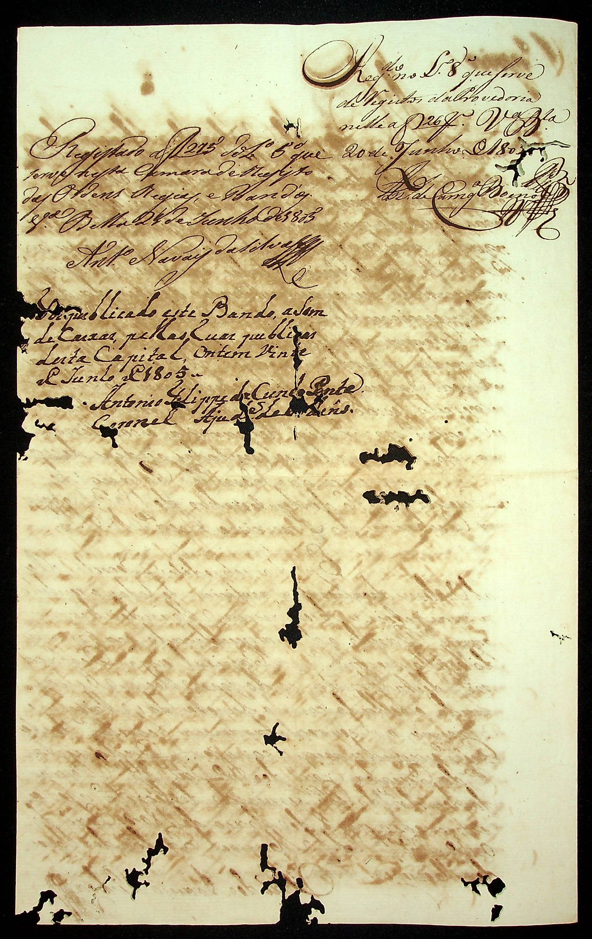 BANDO do Governador e Capitão General da Capitania de Mato Grosso Manoel Carlos de Abreu de Menezes.