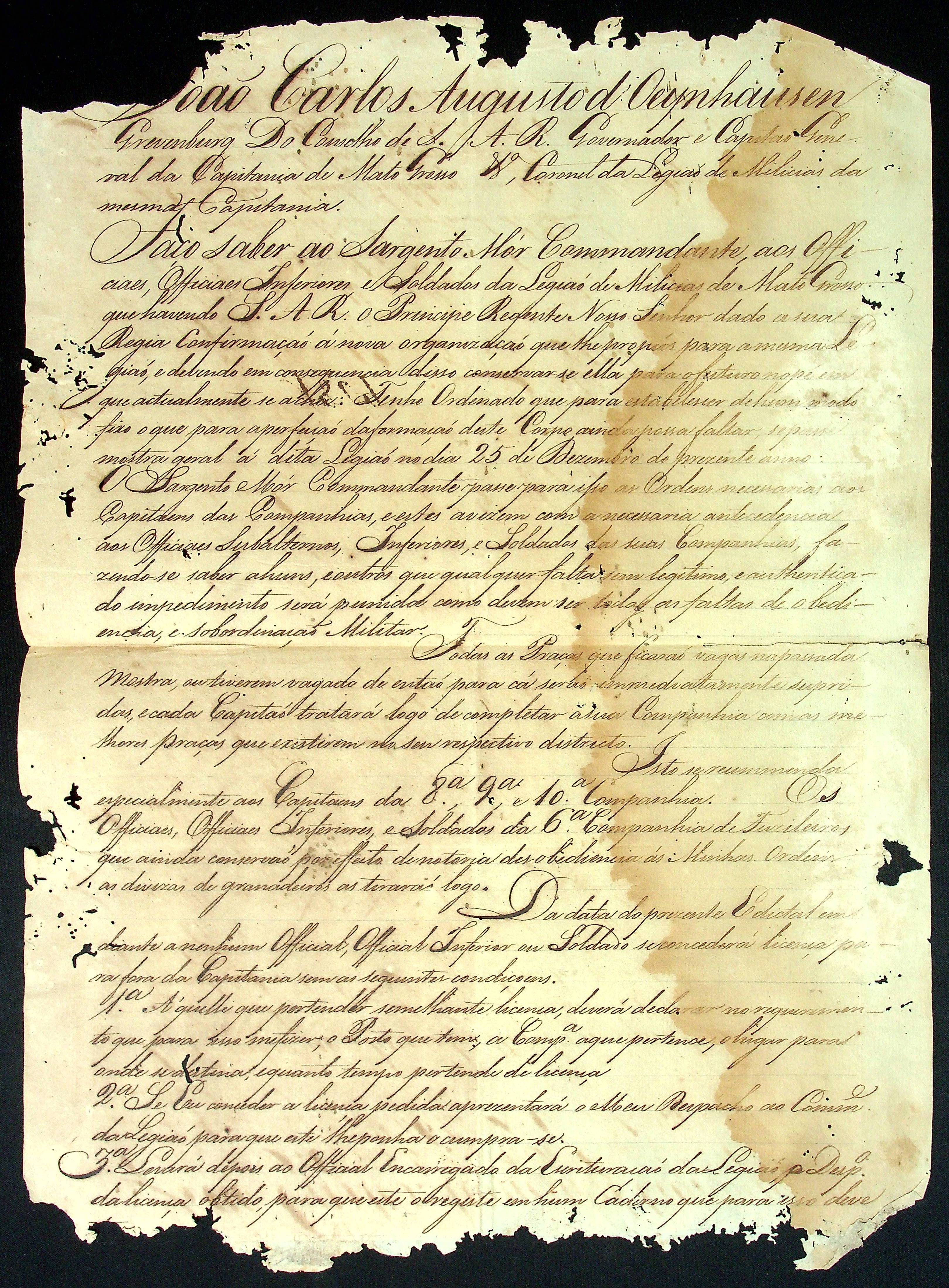 BANDO do Governador e Capitão General da Capitania de Mato Grosso João Carlos Augusto de Oeynhausen e Gravemberg.