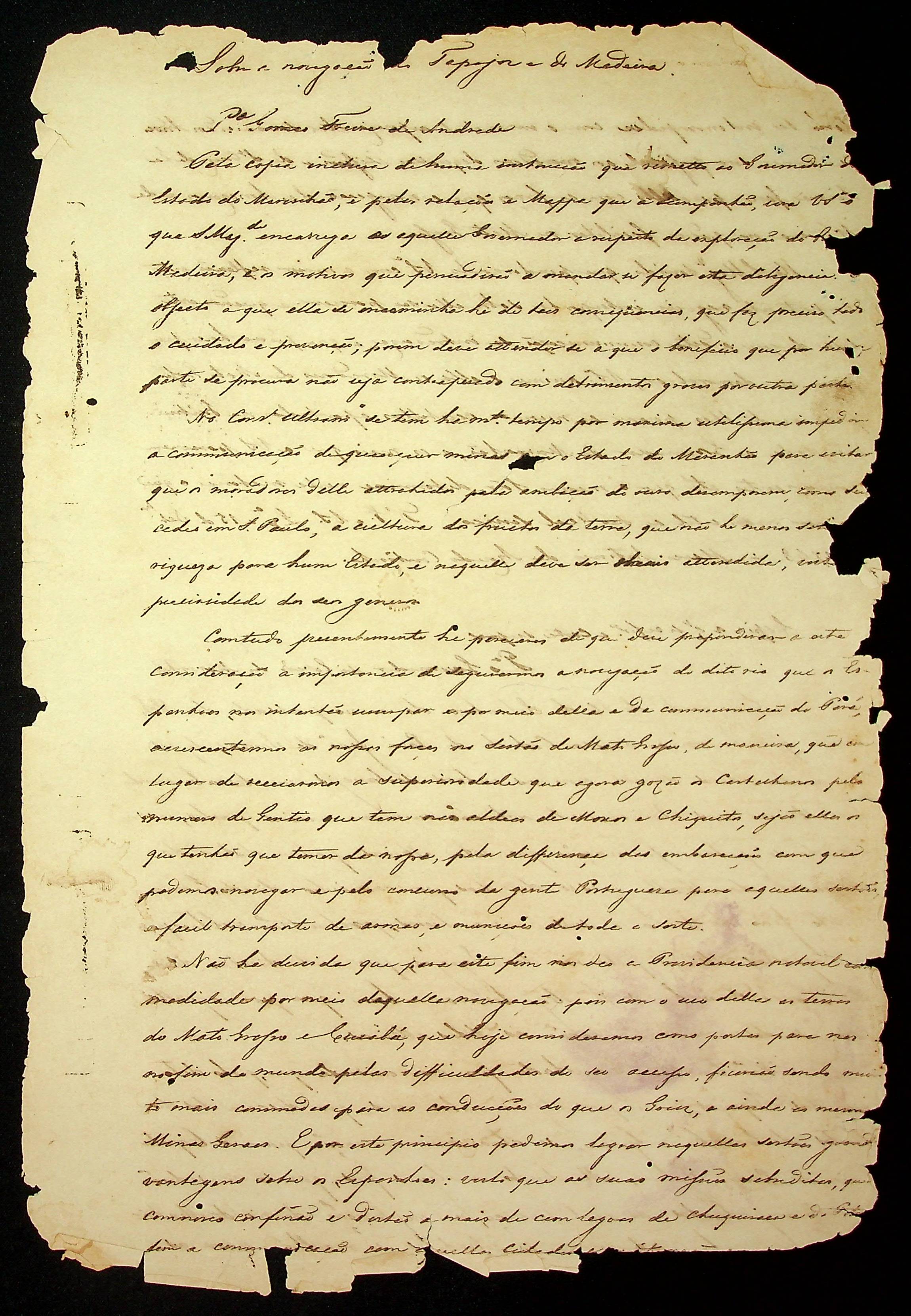 CARTA (Cópia) do Marco Antônio de Arruda Coutinho ao Governador e Capitão-General da Capitania de São Paulo Gomes Freire de Andrade.