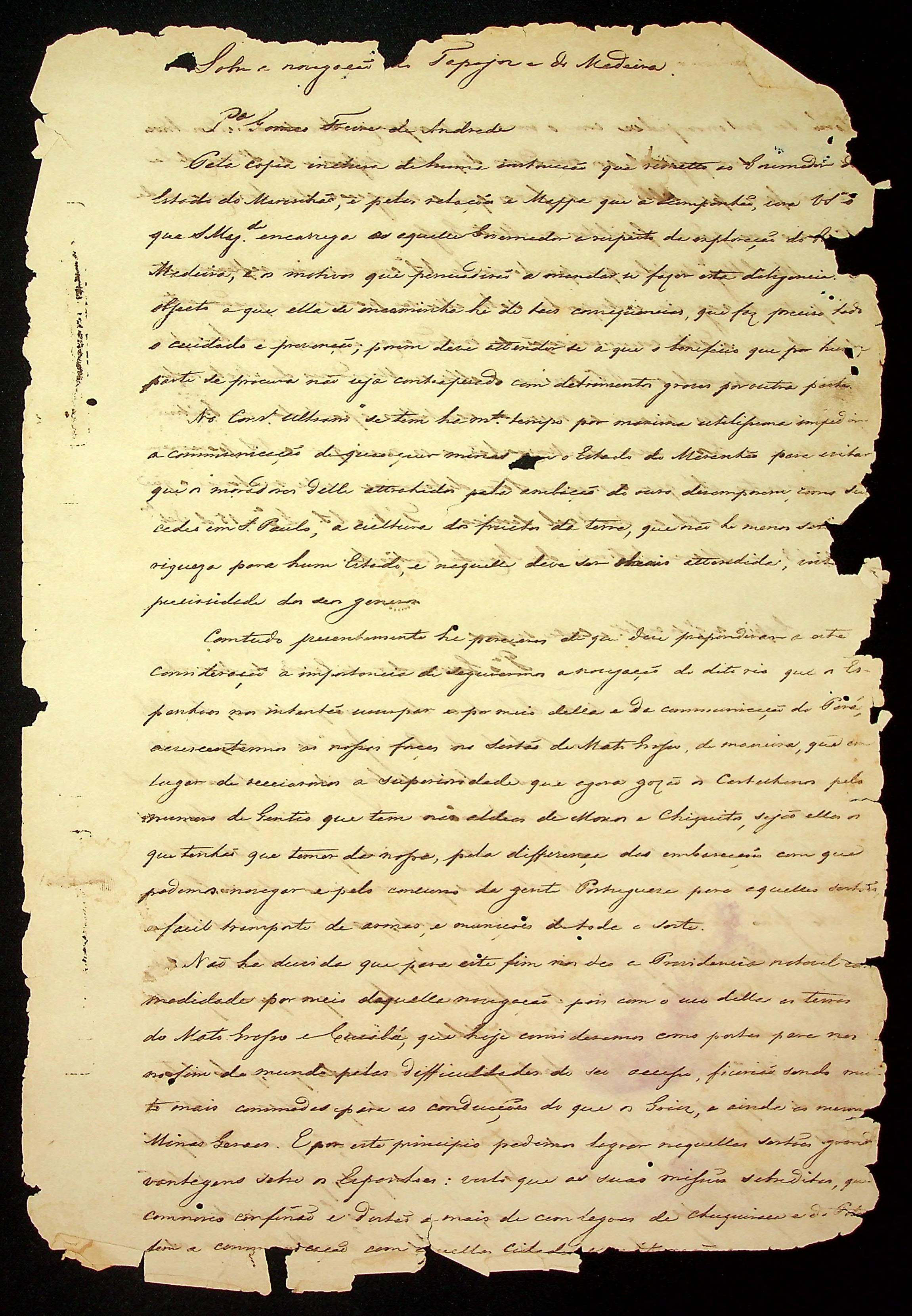 CARTA (Cópia) do Marco Antônio de Arruda Coutinho ao Governador e Capitão-General da Capitania de São Paulo Gomes Freire de Andrade.