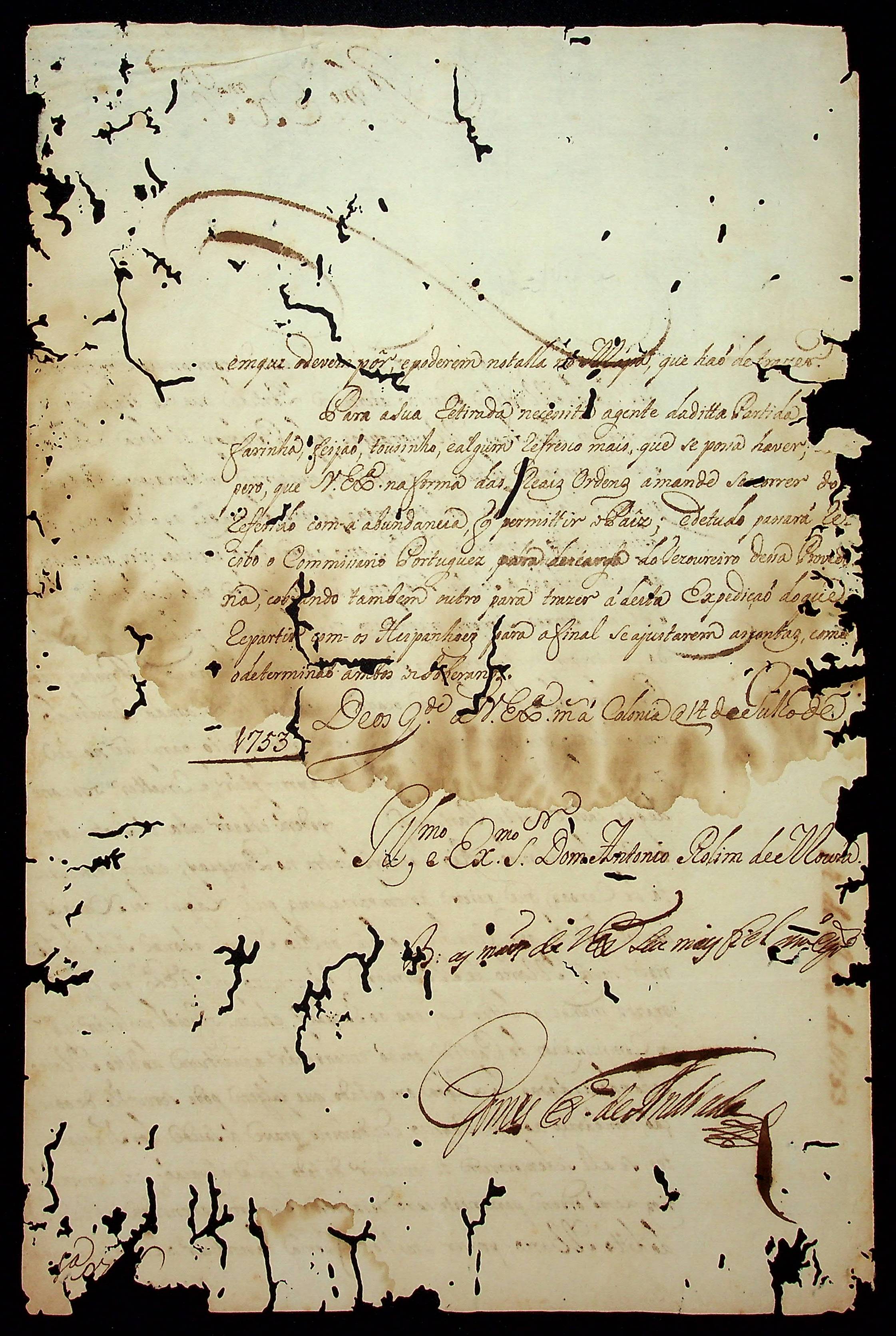 CARTA de Gomes Freire de Andrade ao Governador e Capitão-General da Capitania de Mato Grosso Antônio Rolim de Moura.