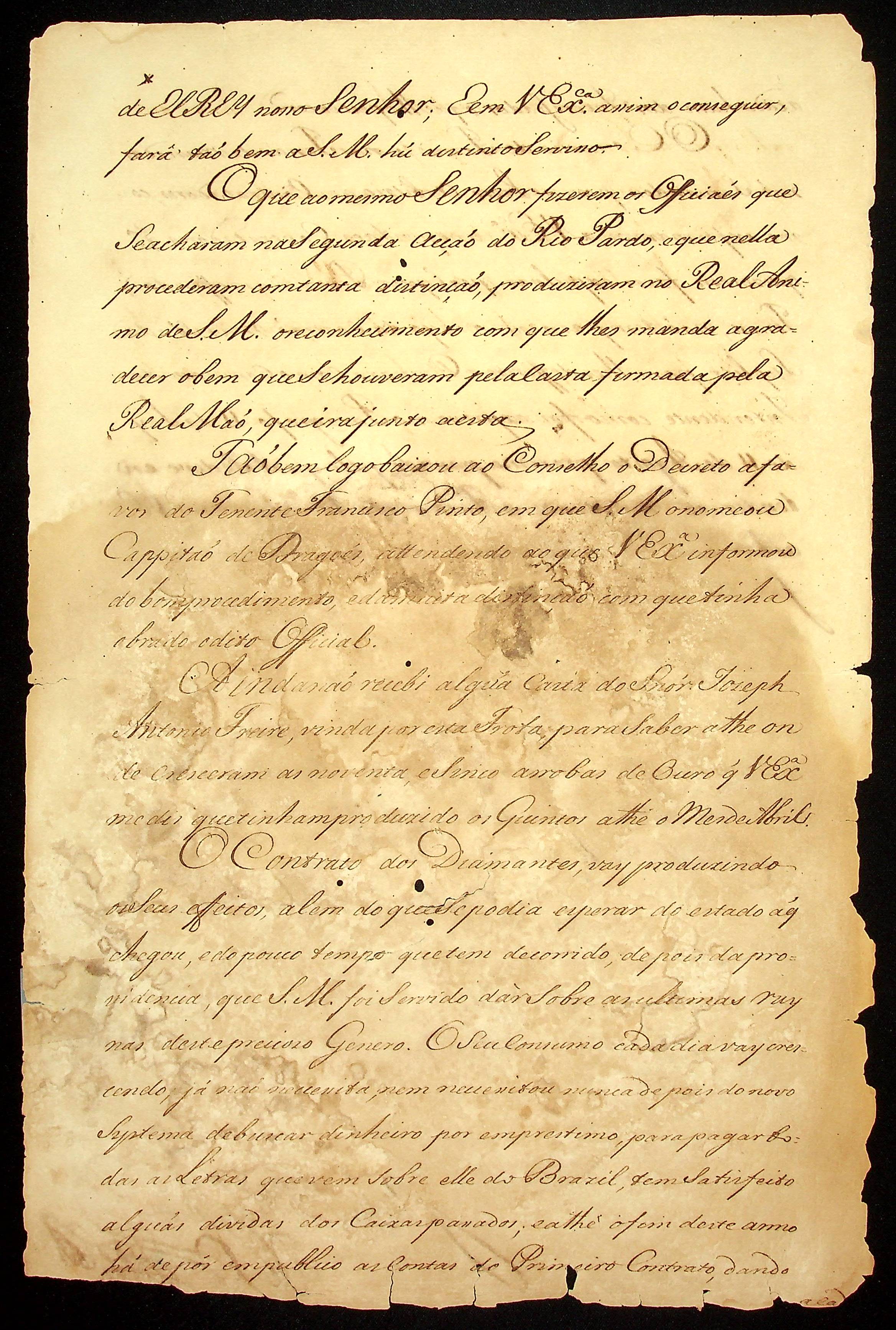 CARTA (Cópia) de Francisco Xavier de Mendonça Furtado á Sebastião José de Carvalho e Mello sobre a Demarcação dos limites entre os domínios espanhóis e português.