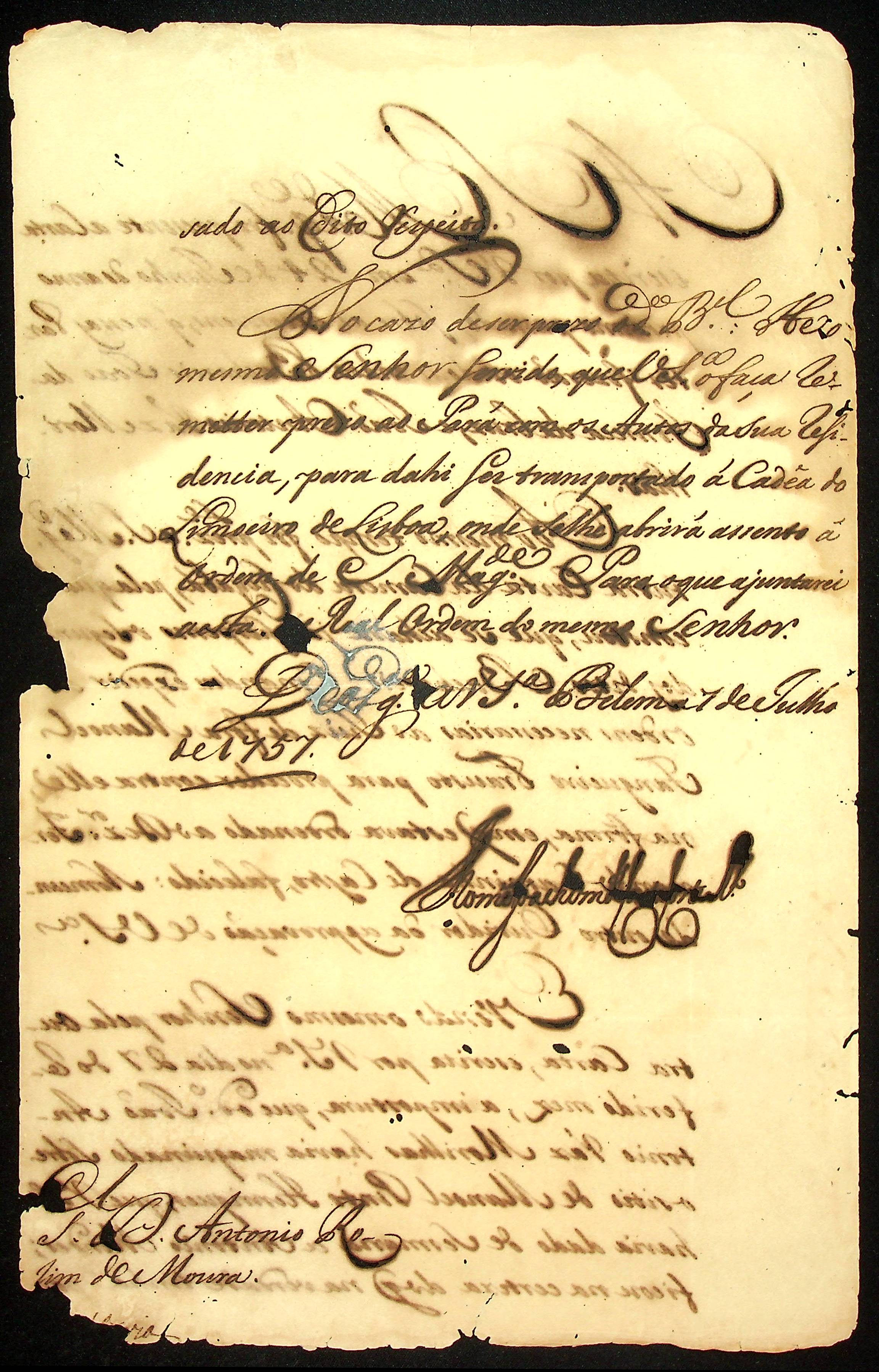 CARTA de Thomé Joaquim da Costa da Corte Real ao Governador e Capitão-General da Capitania de Mato Grosso Antônio Rolim de Moura.