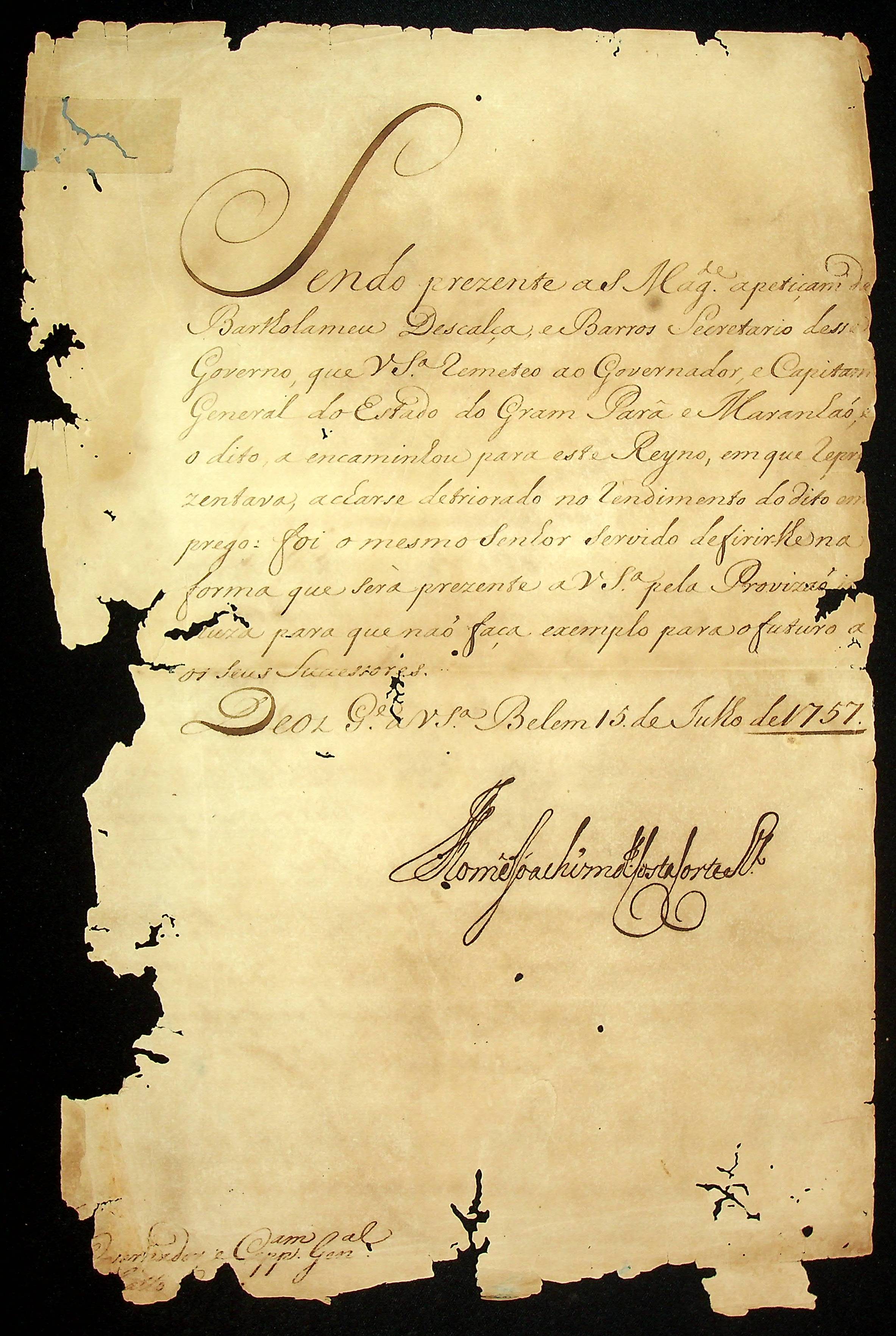 CARTA de Thomé Joaquim da Costa Corte [Real] ao [Governador e Capitão-General da Capitania do Mato Grosso].