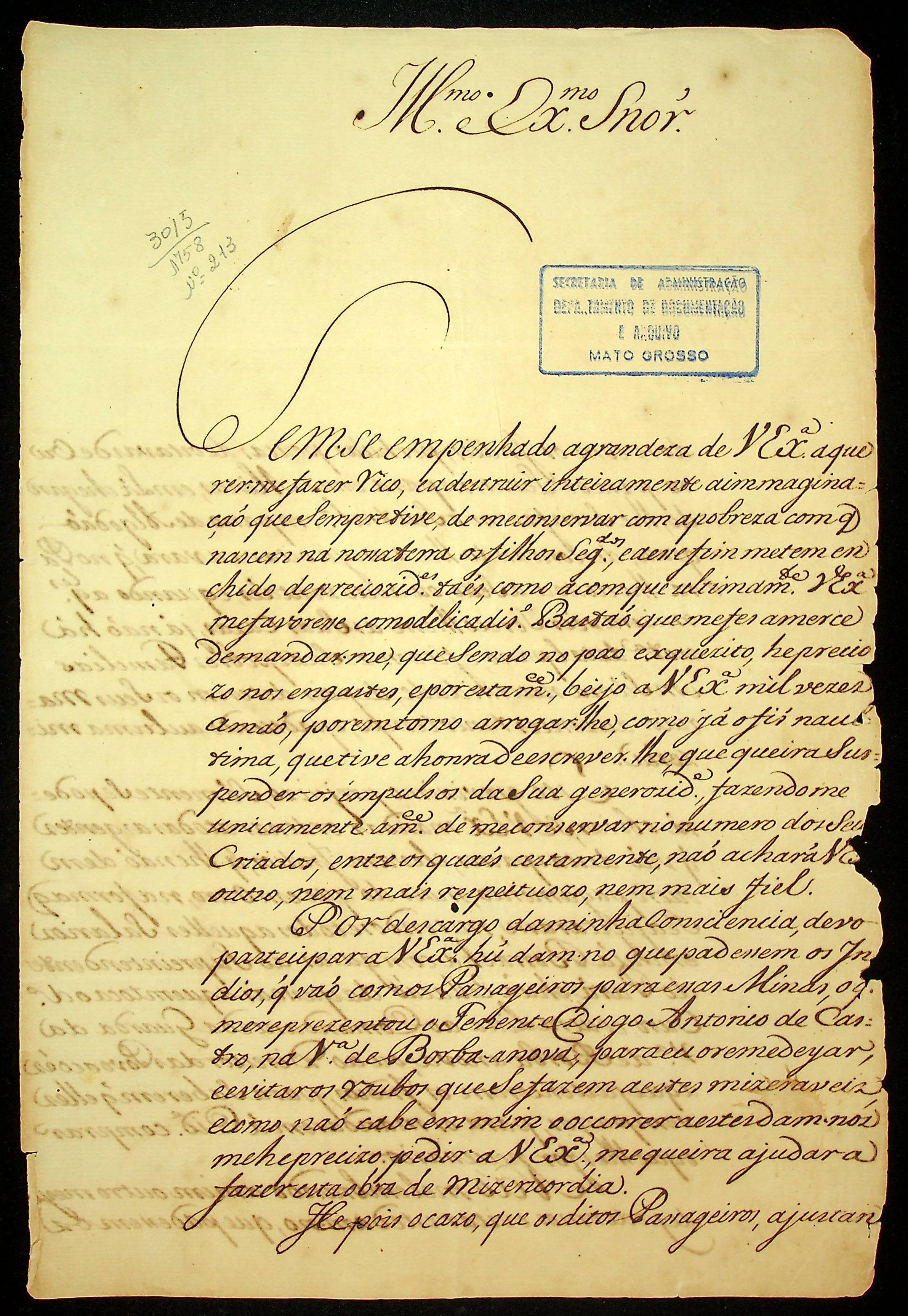 CARTA de Francisco Xavier de Mendonça Furtado ao Governador e Capitão-General da Capitania de Mato Grosso Antônio Rolim de Moura.