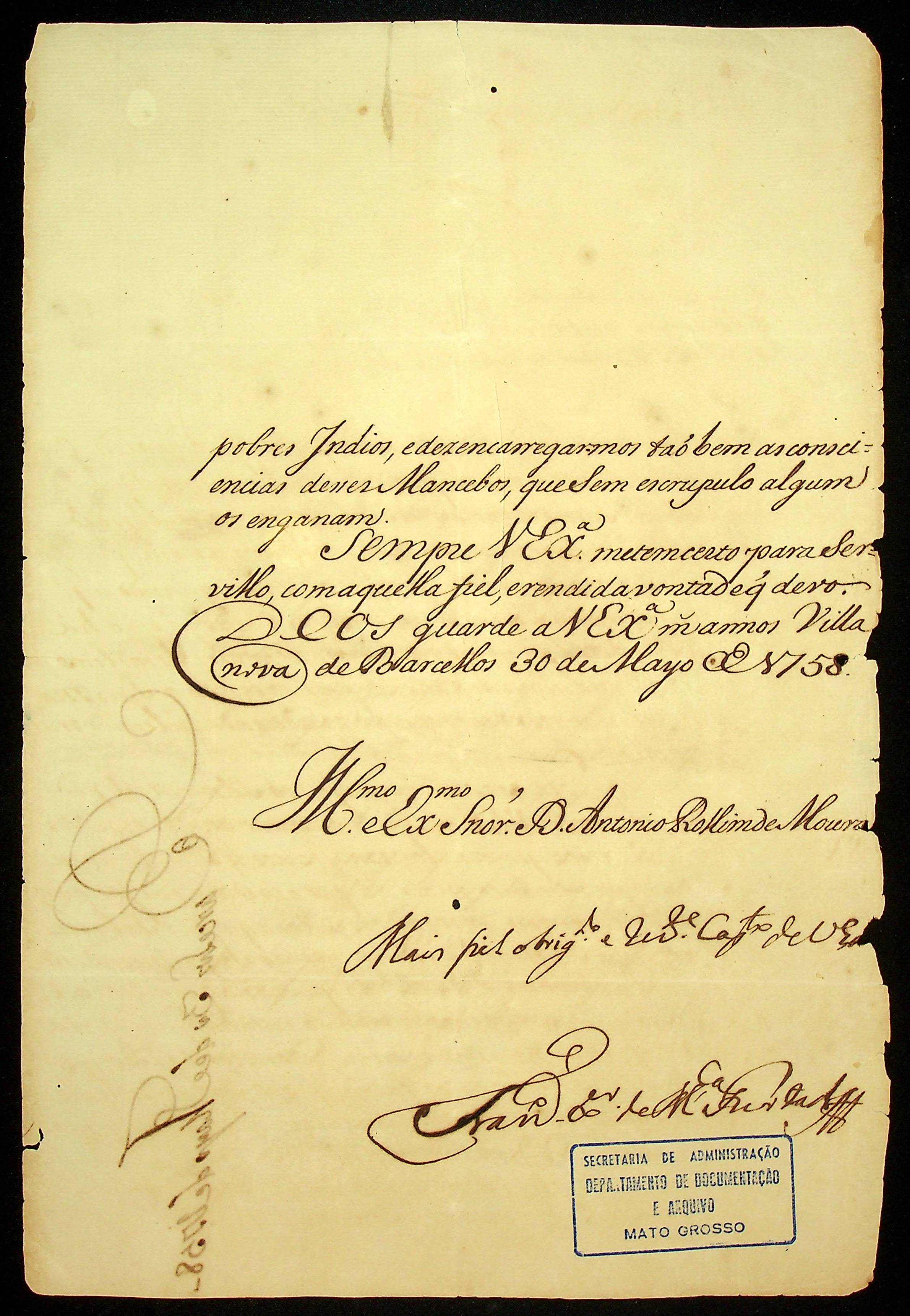 CARTA de Francisco Xavier de Mendonça Furtado ao Governador e Capitão-General da Capitania de Mato Grosso Antônio Rolim de Moura.